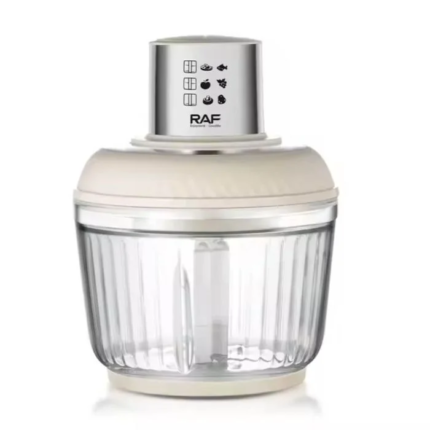 2-in-1 RAF R.7126 coffee and juice blender with stainless-steel blades, 300W power, and dual compartments for grinding beans, spices, and blending fresh juices.