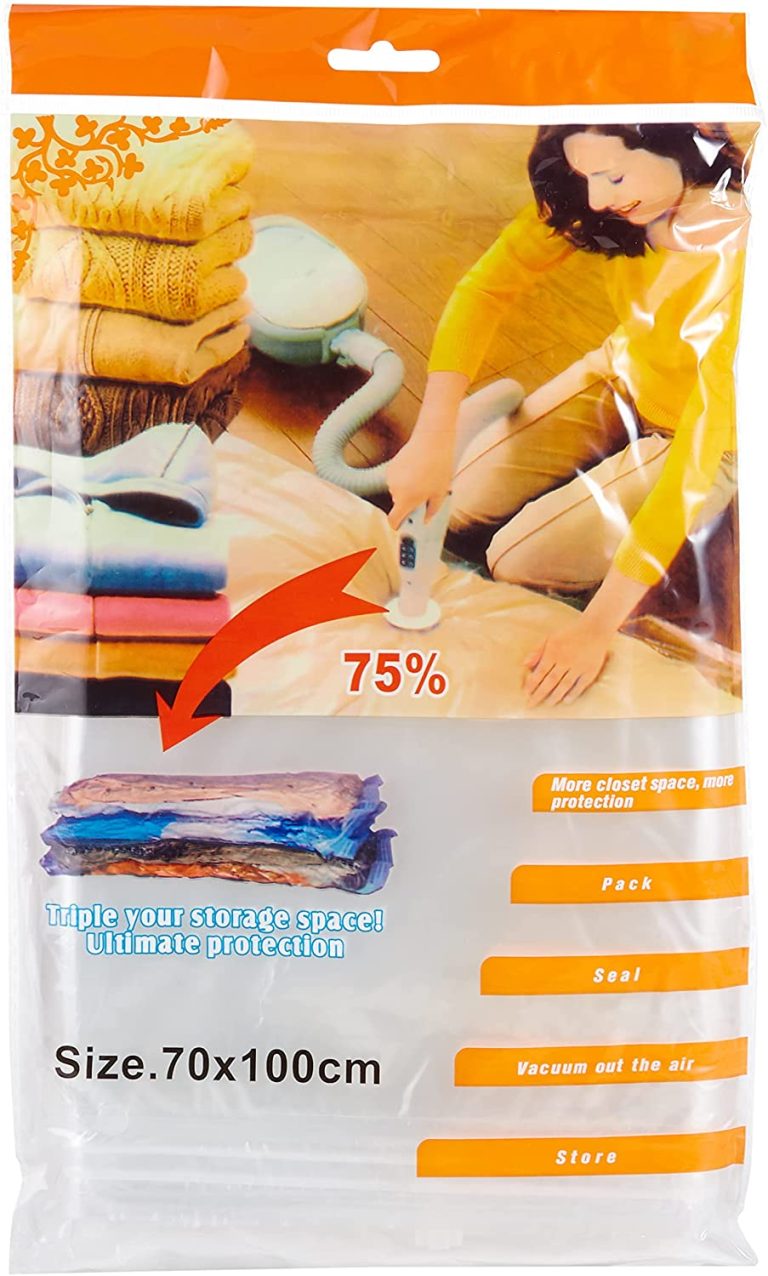 حقيبة سفر لتخزين الملابس والفراش لتوفير المساحة، شفافة، 70 × 100 سم، ارتفاع 20.6 × عرض 35 × عمق 2 سم