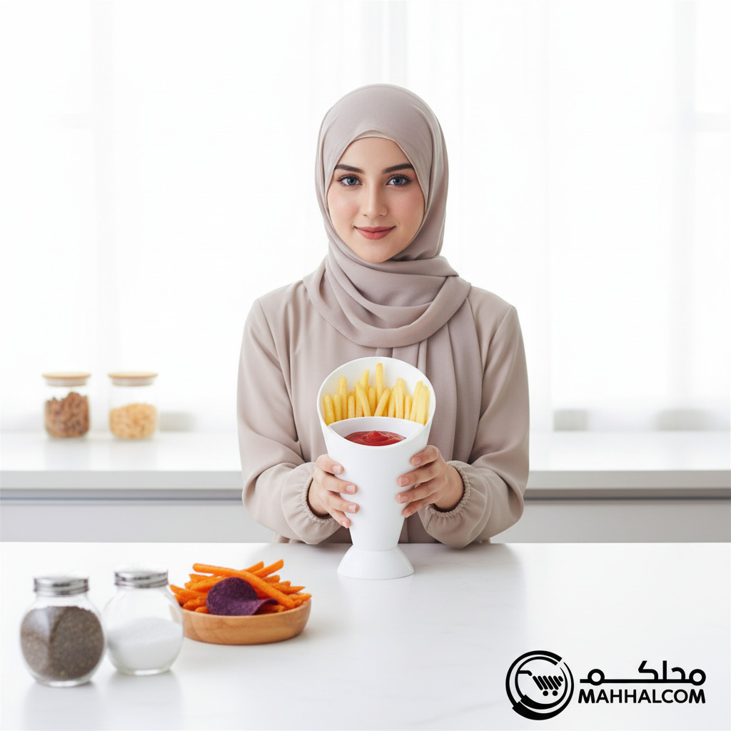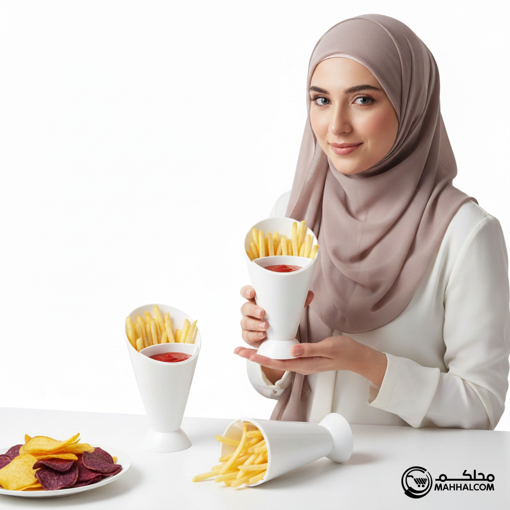 التصميم: مخروط بطاطس مقلية 2 في 1 مع كوب غمس قابل للفصل