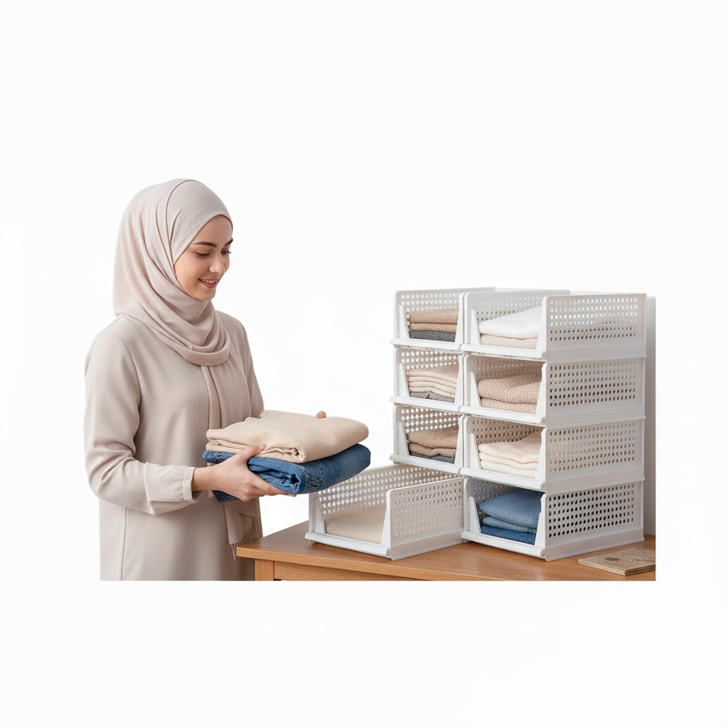 ميزة التكديس والطييمكن تكديس صناديق تنظيم الأدراج الكبيرة المتحركة هذه، مما يساعد على تنظيم مساحتك الرأسية والاستفادة منها على أكمل وجه. لا حاجة للتركيب. ما عليك سوى فتحها عند الاستخدام وطيها عند عدم الاستخدام لسهولة التخزين وتوفير المساحة. (ملاحظة: لا يمكن سحبها للخارج مثل الأدراج، بل يمكن تكديسها فقط). |