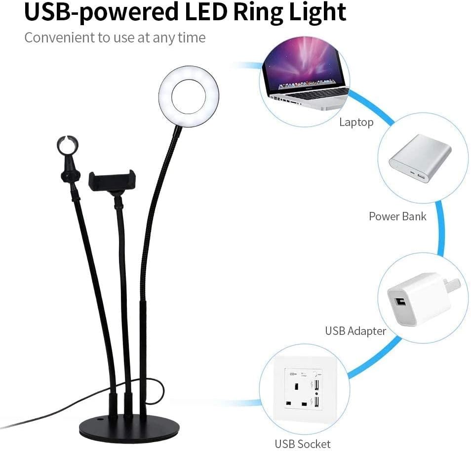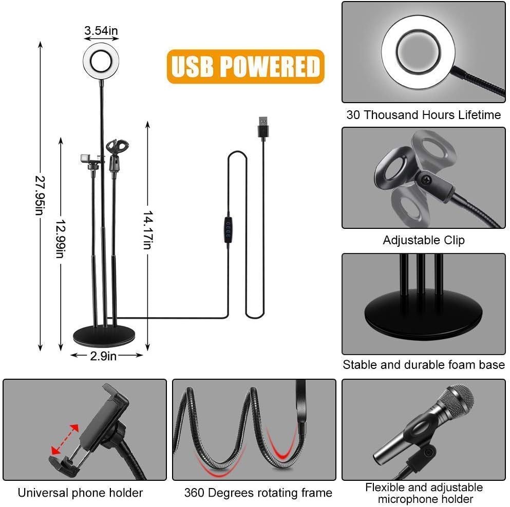 مصباح حلقي لفيديو سطح المكتب، حامل ميكروفون للهاتف، مصباح سيلفي للبث المباشر على يوتيوب وتيك توك، 3 في 1، 9 سم، LED