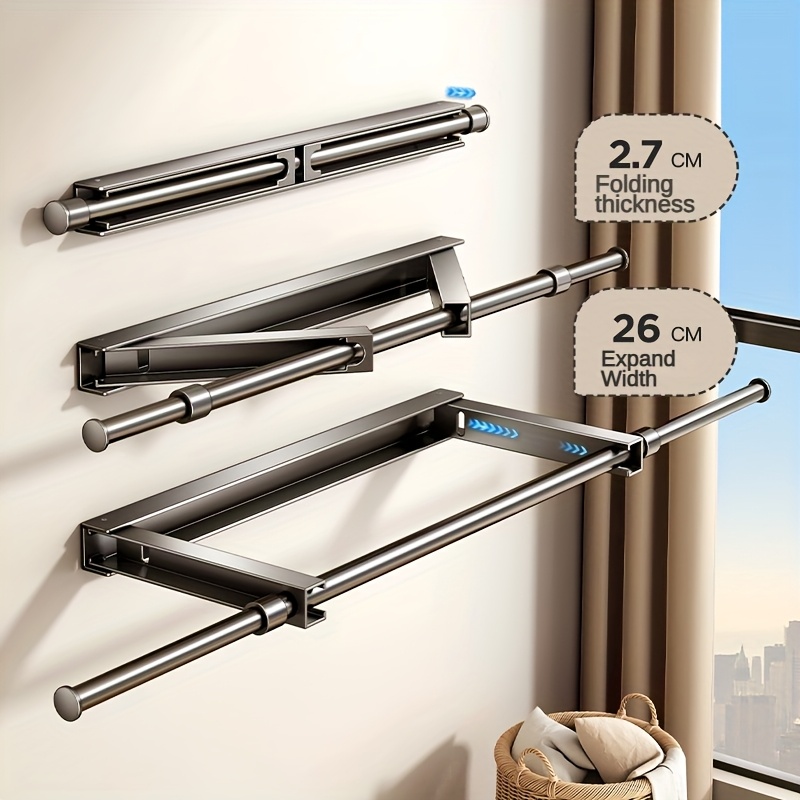 حسّن مساحتك مع رف التجفيف الجداري هذا، مثالي للشرفات والحمامات. يتميز بتركيبه السلس، وهو قابل للطي والسحب، مما يعزز سعة تجفيفك بشكل كبير مع الحفاظ على مظهر أنيق وديكوري.