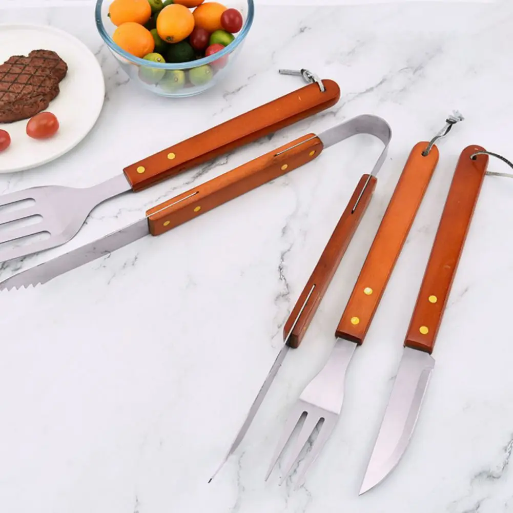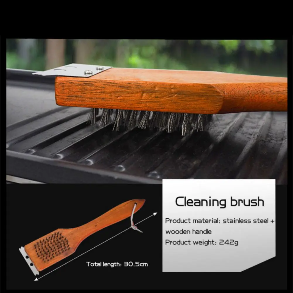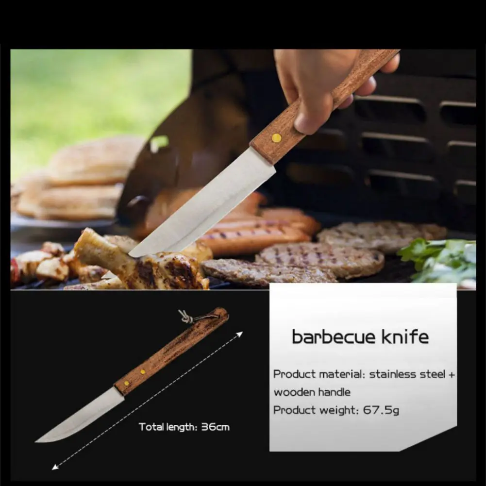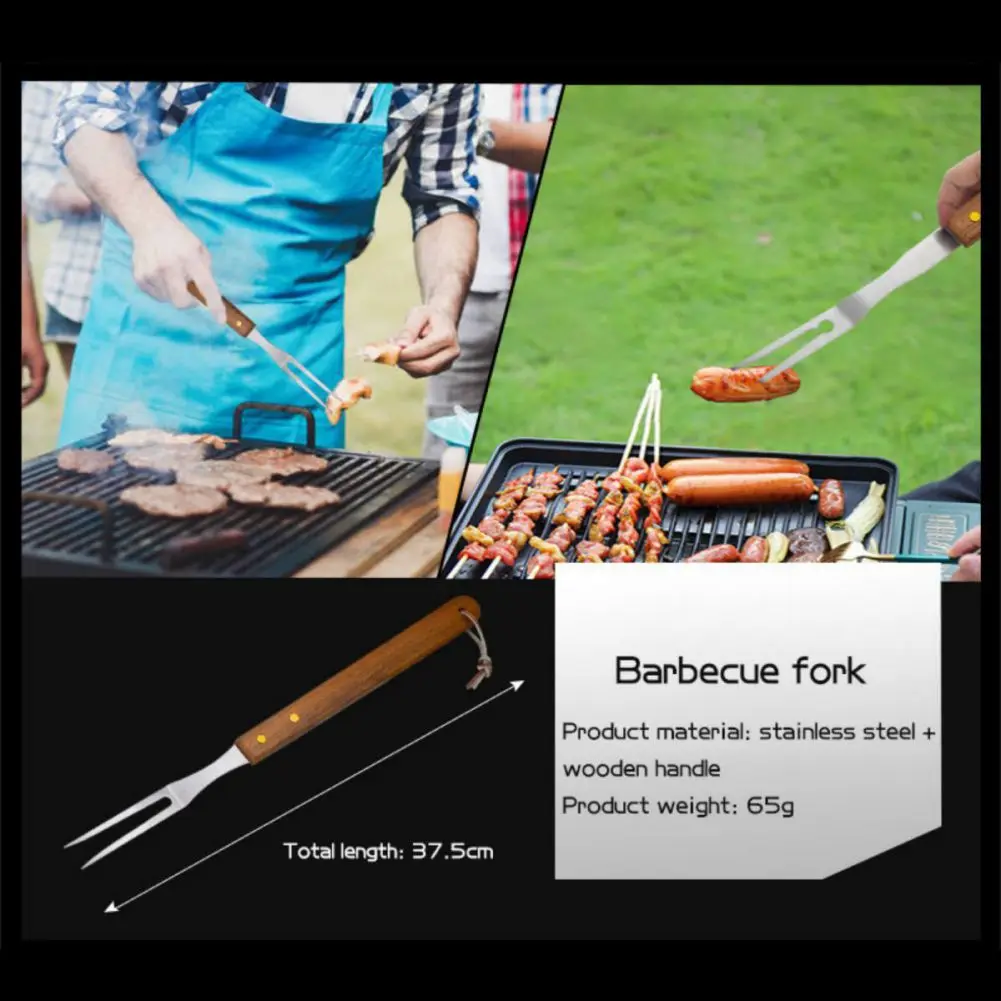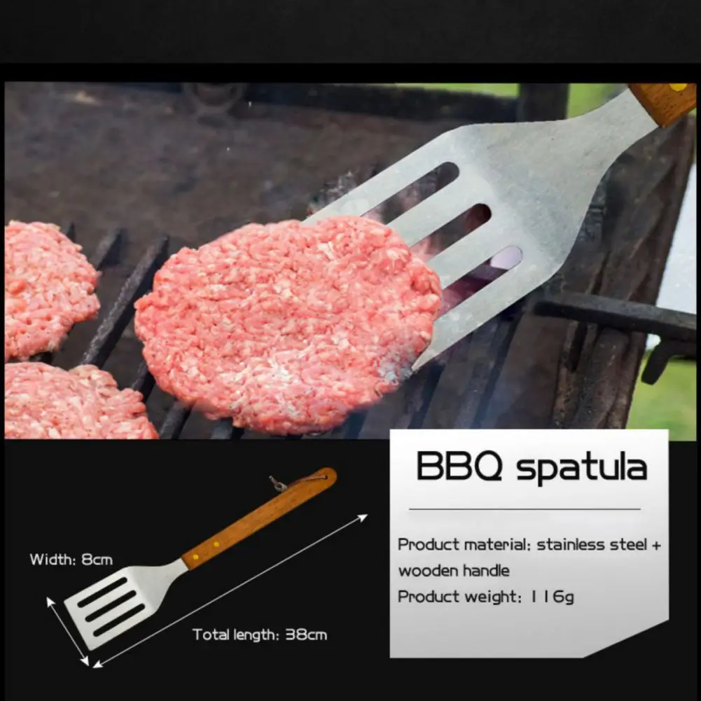 ٢. أدوات الشواء لدينا مصنوعة من الفولاذ المقاوم للصدأ ٤٠٢ الآمن غذائيًا والخشب، وهي سميكة جدًا ومتينة وطويلة الأمد. مقبضها مريح ونحيف، مما يحميك من الحرارة ويجنبك الحروق. بفضل تصميمها المُعلق، يُمكن تعليقها بسهولة على خطافات الشواء أو الشوايات.