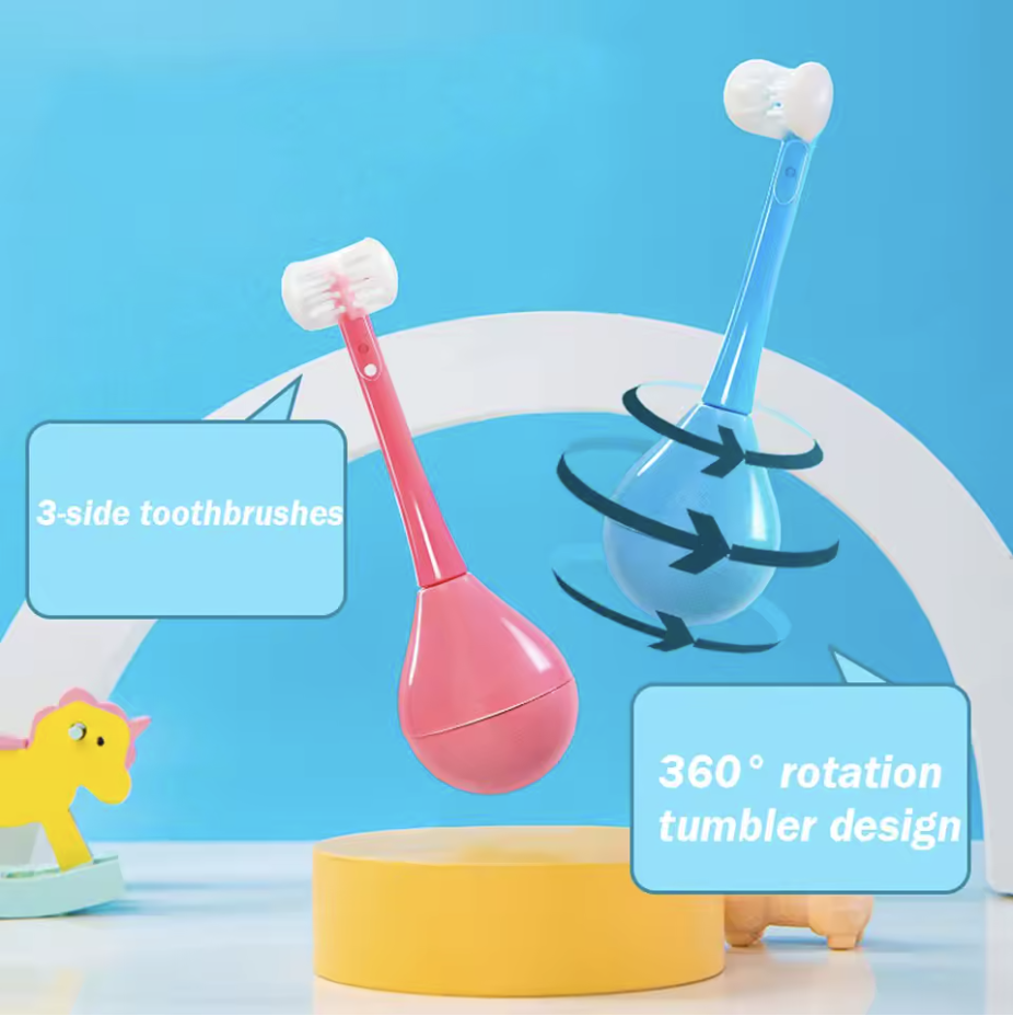 فرشاة أسنان للأطفال ثلاثية الجوانب على شكل حرف U، مصنوعة من السيليكون الناعم، فرشاة أسنان غير قابلة للانزلاق، فرشاة أسنان ثلاثية الأبعاد