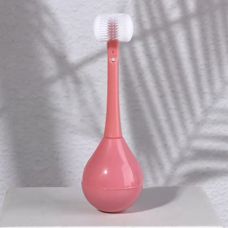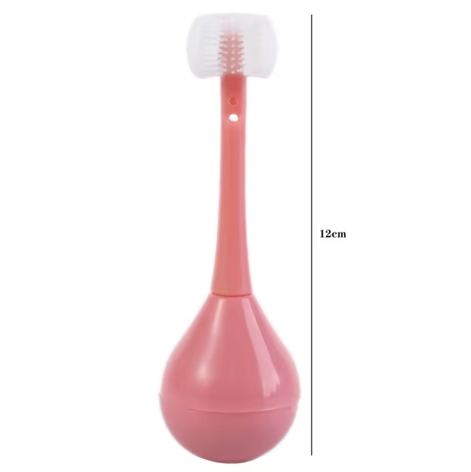 يتميز هذا المنتج بتصميمه البسيط الذي يضمن سهولة استخدامه. فرشاة أسنان ثلاثية الجوانب بشعيرات سيليكون ناعمة مثالية لتنظيف الأسنان بعمق.