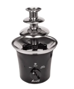 ما عليك سوى سكب قطع الشوكولاتة المذابة في القاعدة، وتشغيل المفتاح، وسيقوم نافورة الشوكولاتة بالباقي.