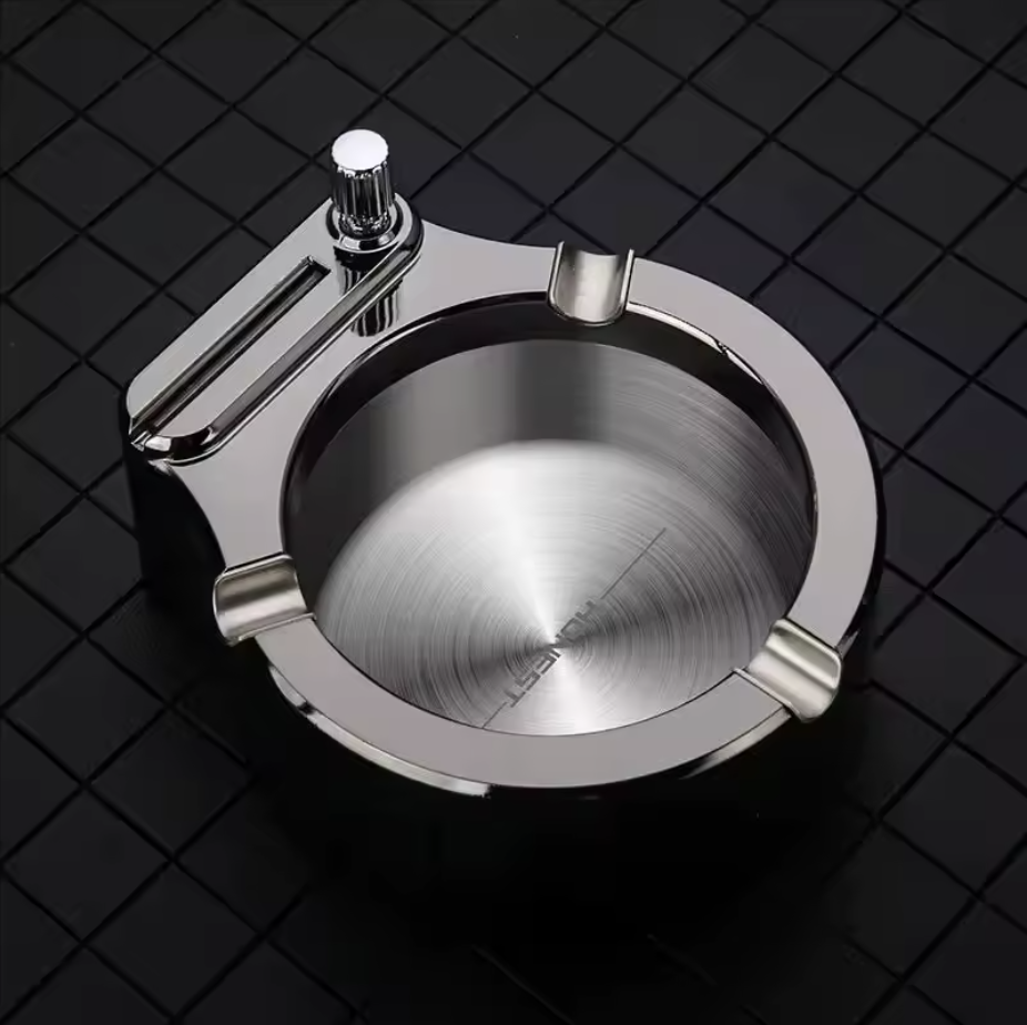 منفضة سجائر معدنية رمادية عتيقة، ولاعة كيروسين من فلينت، أداة لتزيين سطح المكتب والمنزل، منفضة سجائر متعددة الاستخدامات