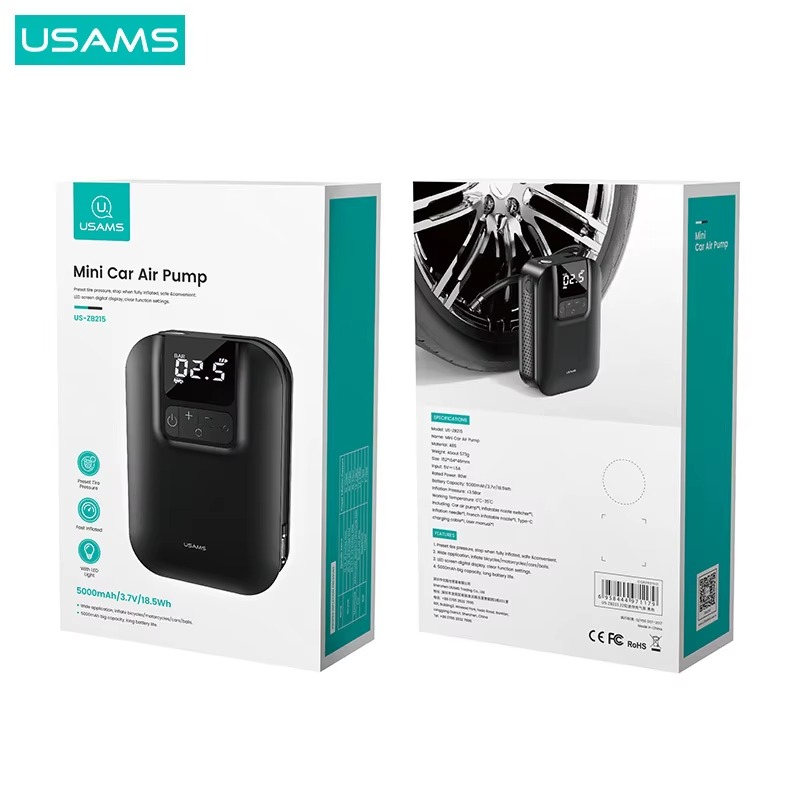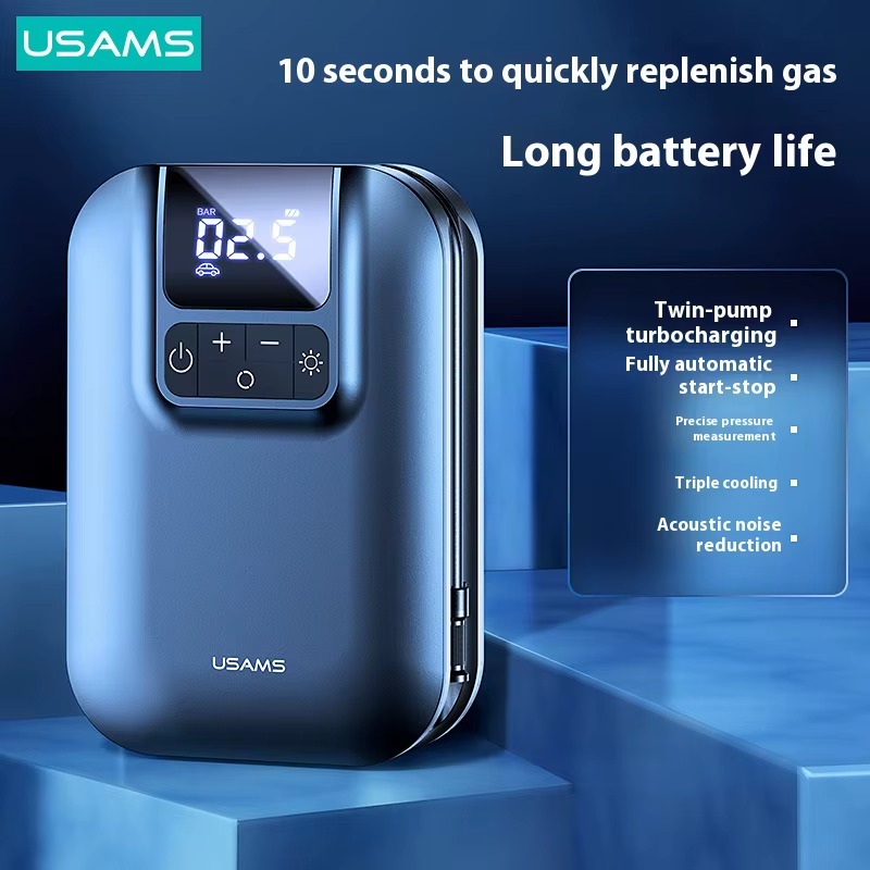 حافظ على إطاراتك آمنة وجاهزة في أي مكان باستخدام ضاغط هواء رقمي لاسلكي للسيارة من USAMS (موديل ZB215 2023). تم تجهيز منفاخ الإطارات المدمج والمحمول هذا بـ بطارية قابلة لإعادة الشحن بسعة 5000 مللي أمبير في الساعة, ، مما يوفر أداءً قويًا وموثوقًا به للسيارات والدراجات النارية والدراجات الهوائية وحتى الكرات الرياضية.
