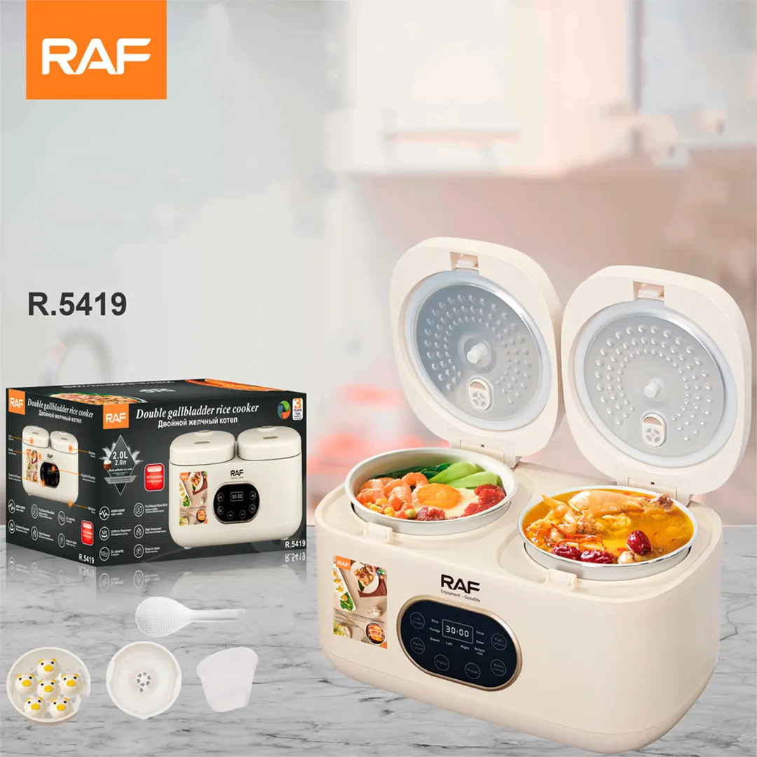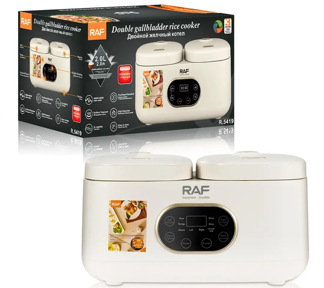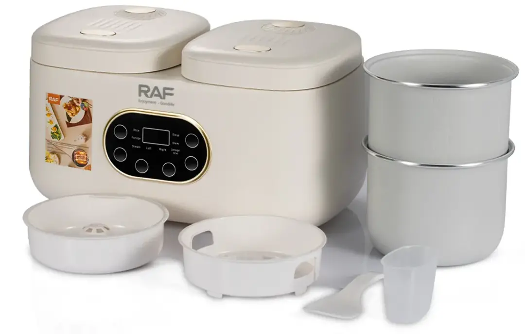 Allows you to cook two different types of food at the same time, each pot with a 2L capacity and 300W power per side.