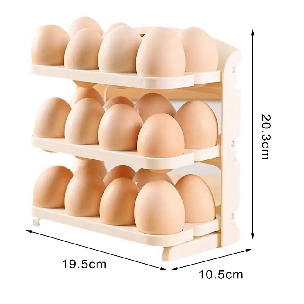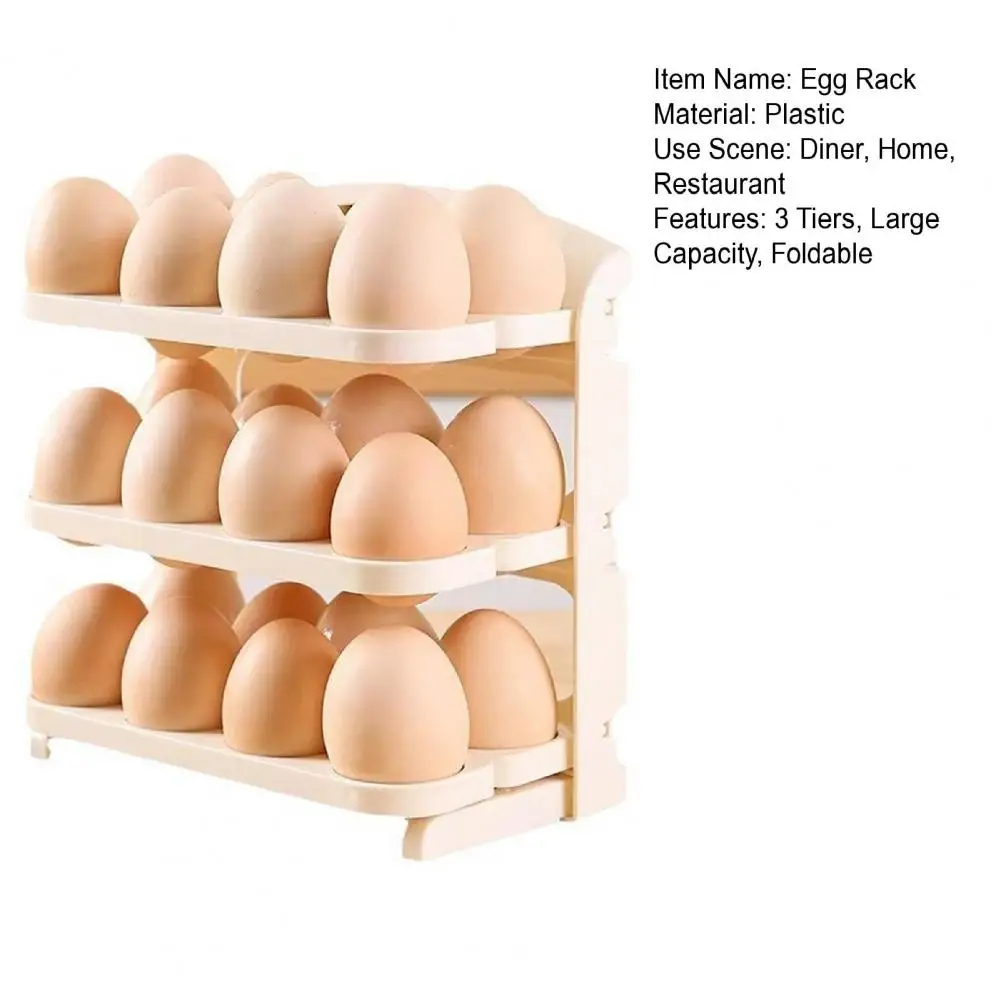 رف بيض الثلاجة سعة 3 طبقات لتنظيم وتخزين 24 بيضة بكفاءة في المطبخ أو الثلاجة بتصميم قابل للطي