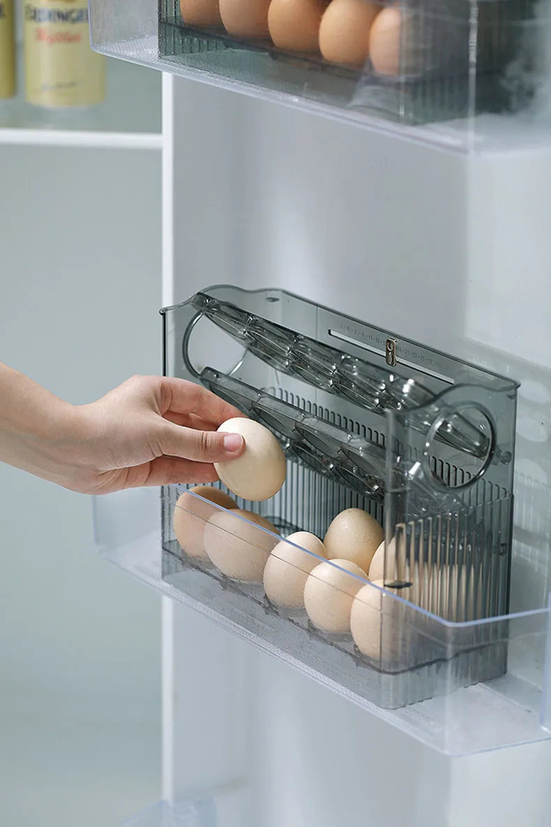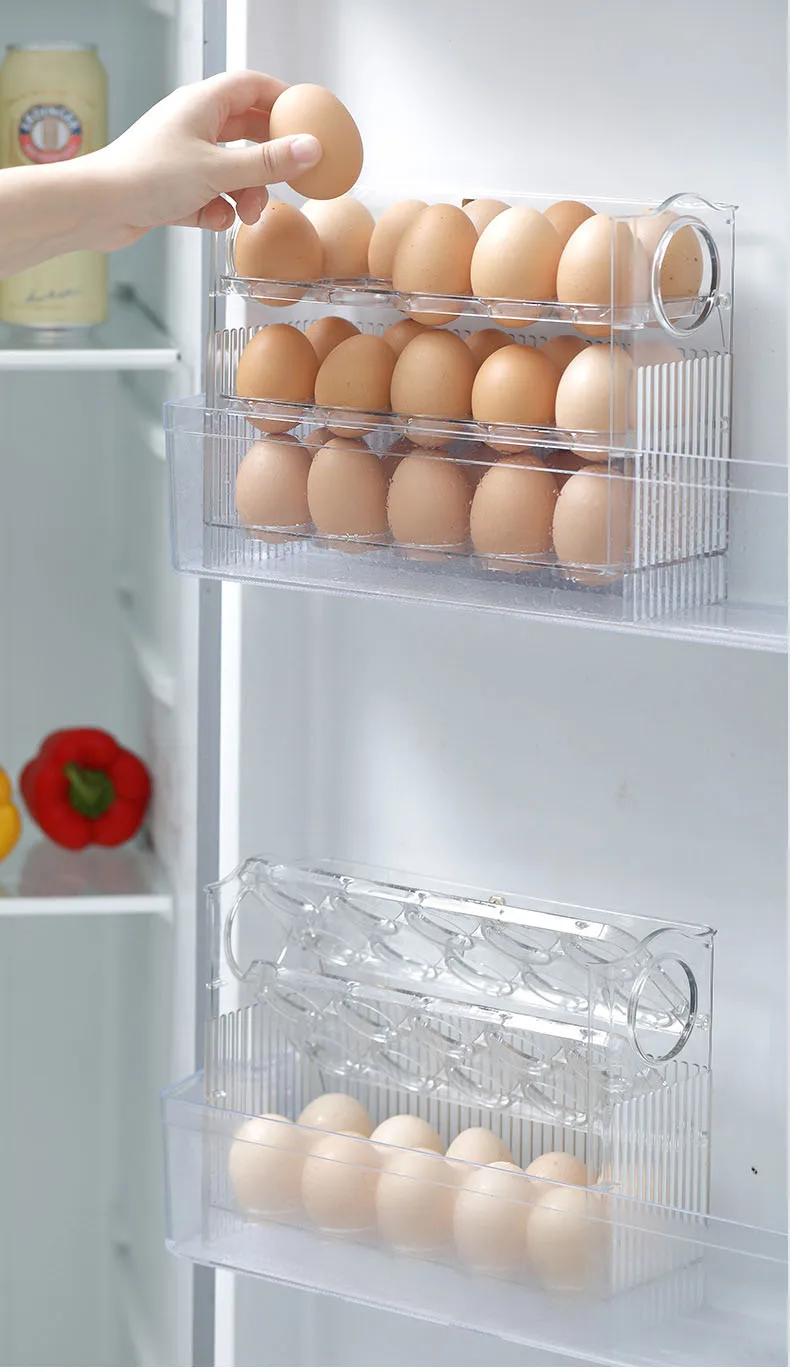 صندوق تخزين البيض، منظم الثلاجة، حاويات الطعام، حافظة حفظ البيض طازجًا، حامل صينية موزع، صناديق تخزين المطبخ الجديدة