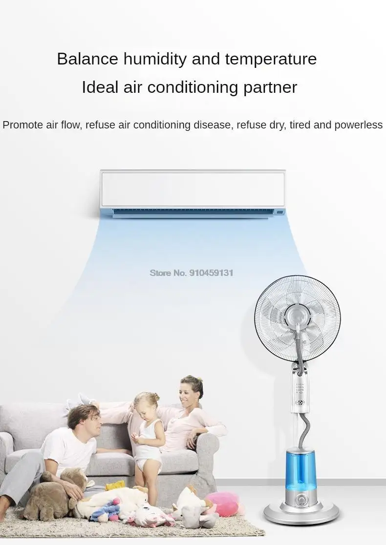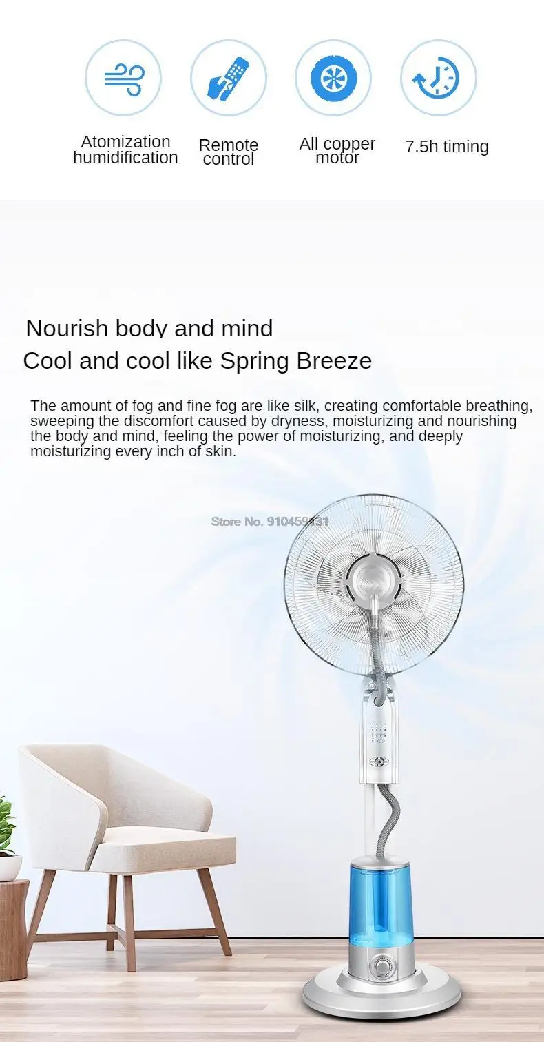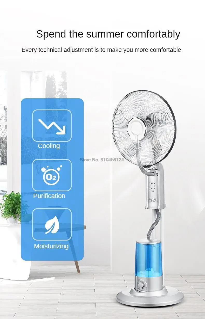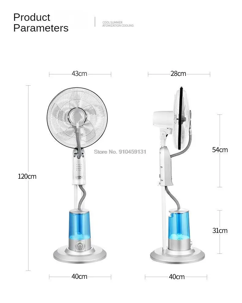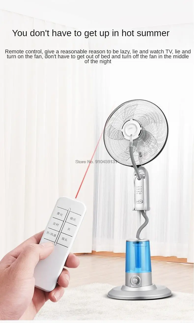 مروحة تبريد أرضية كهربائية 220 فولت 75 وات مع خزان مياه سعة 3.2 لتر توقيت 7.5 ساعة 5 أمتار جهاز تحكم عن بعد مروحة رذاذ ماء 16 بوصة منزلية