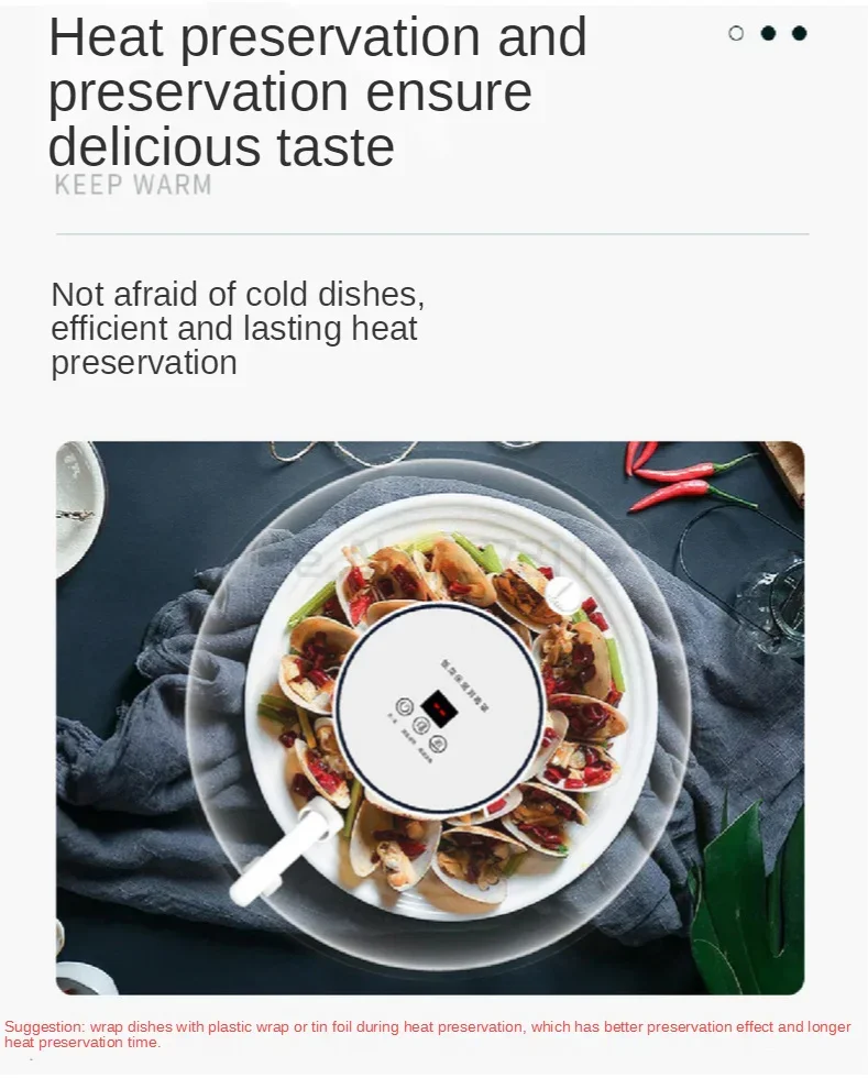 غطاء الحفاظ على حرارة الطعام وتطهيره BW001 - 90 وات، مصنوع من مادة البولي بروبيلين والبولي بروبيلين المتينة، يحافظ على الوجبات ساخنة وصحية في المنزل أو في المطاعم.