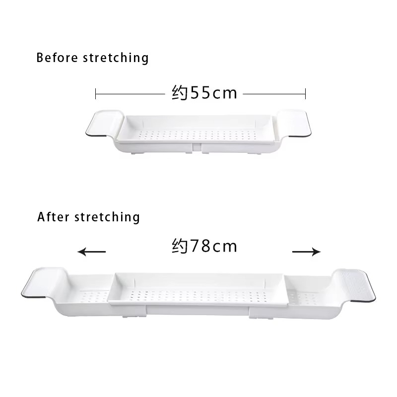 رف الحمام القابل للتمدد منظم عملي ومتعدد الاستخدامات، مصمم للحمامات العصرية. مصنوع من مواد صديقة للبيئة من البولي بروبيلين والمطاط الحراري (TPR)، وهو آمن ومتين ومقاوم للرطوبة والتآكل. بفضل تصميمه القابل للسحب، يمكن تمديد الصينية بسهولة من 55 سم إلى 78 سم (21.6 بوصة - 30.7 بوصة)، مما يجعله متوافقًا مع معظم أحواض الاستحمام.