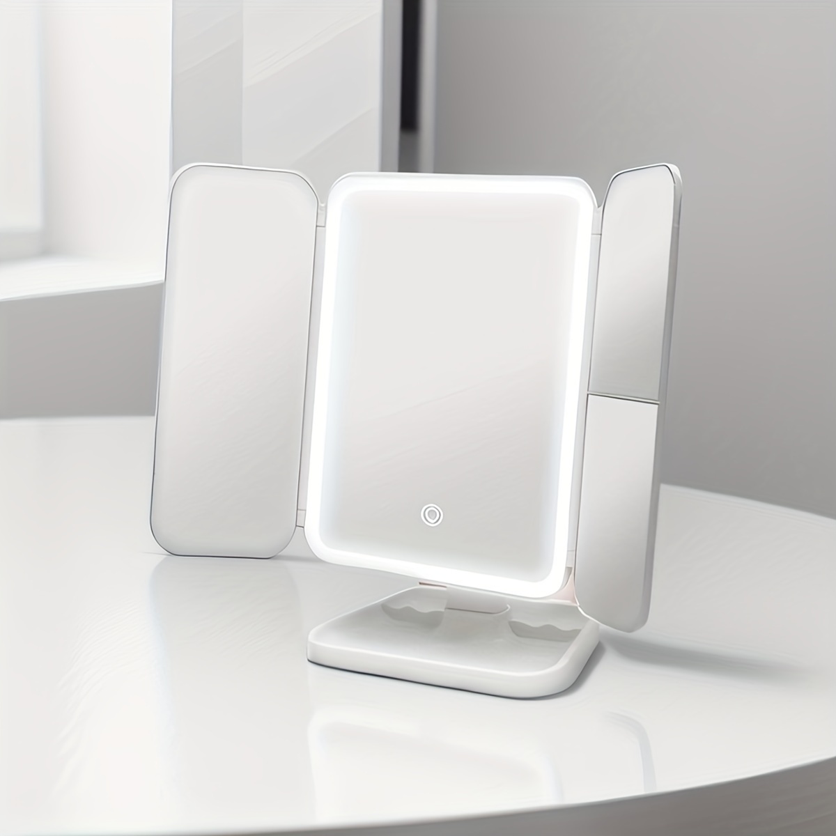 نقدم لكم مرآة سطح المكتب القابلة للطي ثلاثية الجوانب، إضافة أنيقة ومتعددة الاستخدامات لروتين جمالكِ. صُممت هذه المرآة المحمولة ثلاثية الجوانب لتوفر لكِ الراحة والأناقة، وهي مثالية لغرف النوم، والصالونات، أو كهدية عيد ميلاد مميزة. تصميمها الموفر للمساحة يسمح بوضعها بسهولة على أي طاولة، مما يجعلها قطعة أساسية لوضع المكياج والعناية الشخصية.