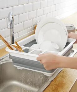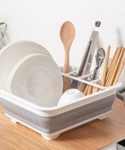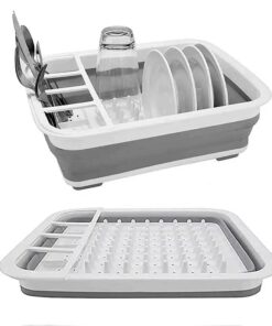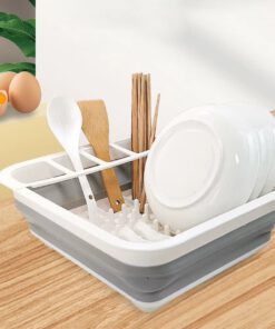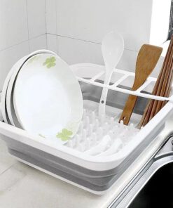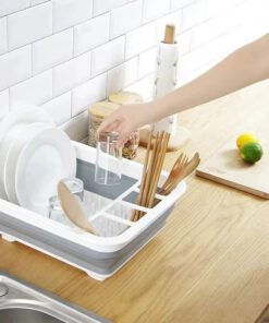 ال Folding Dish Rack Set is a practical and space-saving solution for keeping your kitchen neat and organized. Made from durable PP and TPR materials, it’s designed to drain bowls, plates, cups, and cutlery efficiently after washing.