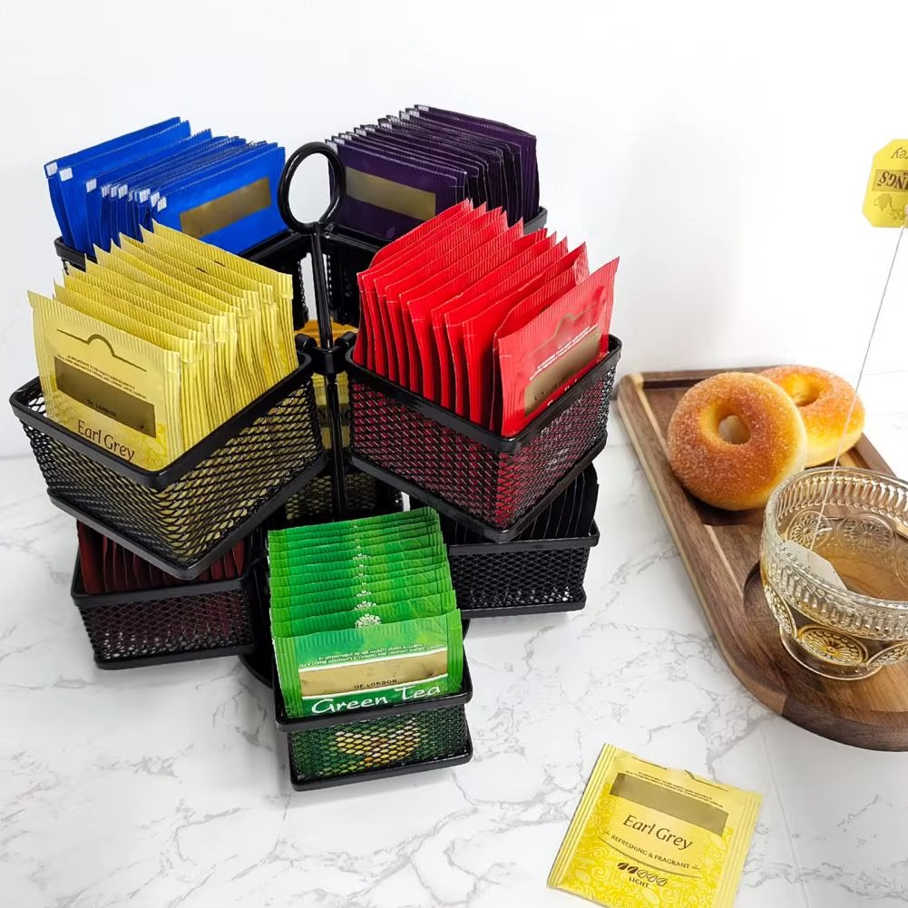حامل أكياس الشاي الحديدي لعرض المشروبات بشكل منظم