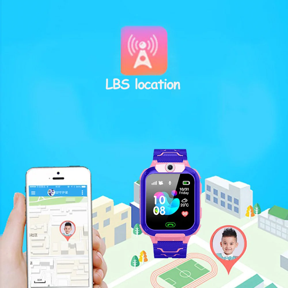ساعة ذكية للأطفال من Oteeto KS1 باللون الأزرق مقاومة للماء مزودة بكاميرا SOS وهاتف ومكالمة صوتية وLBS وتحديد الموقع وساعة للأطفال وساعة ذكية هدية لأجهزة IOS وAndroid
