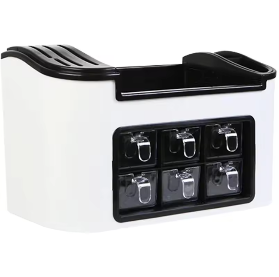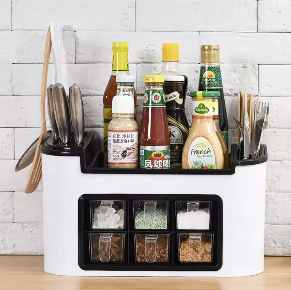 منظم زجاجات التوابل للمطبخ، منظم برطمان توابل بلاستيكي بسعة كبيرة - صندوق تخزين حاوية التوابل