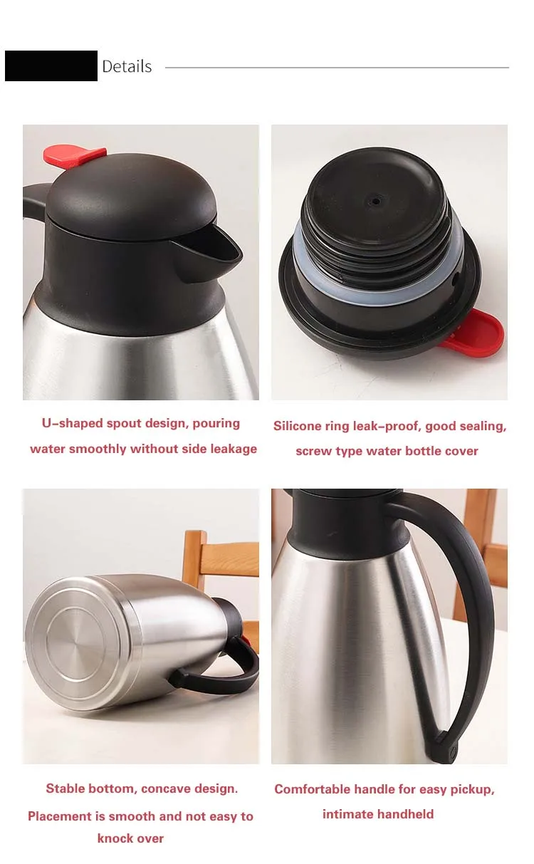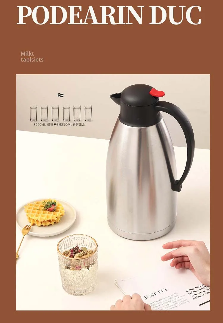 زجاجة معزولة كبيرة السعة، غلاية معزولة مزدوجة الجدار مصنوعة من الفولاذ المقاوم للصدأ، ساخنة وباردة، مناسبة للمكتب والفندق والشاي والقهوة