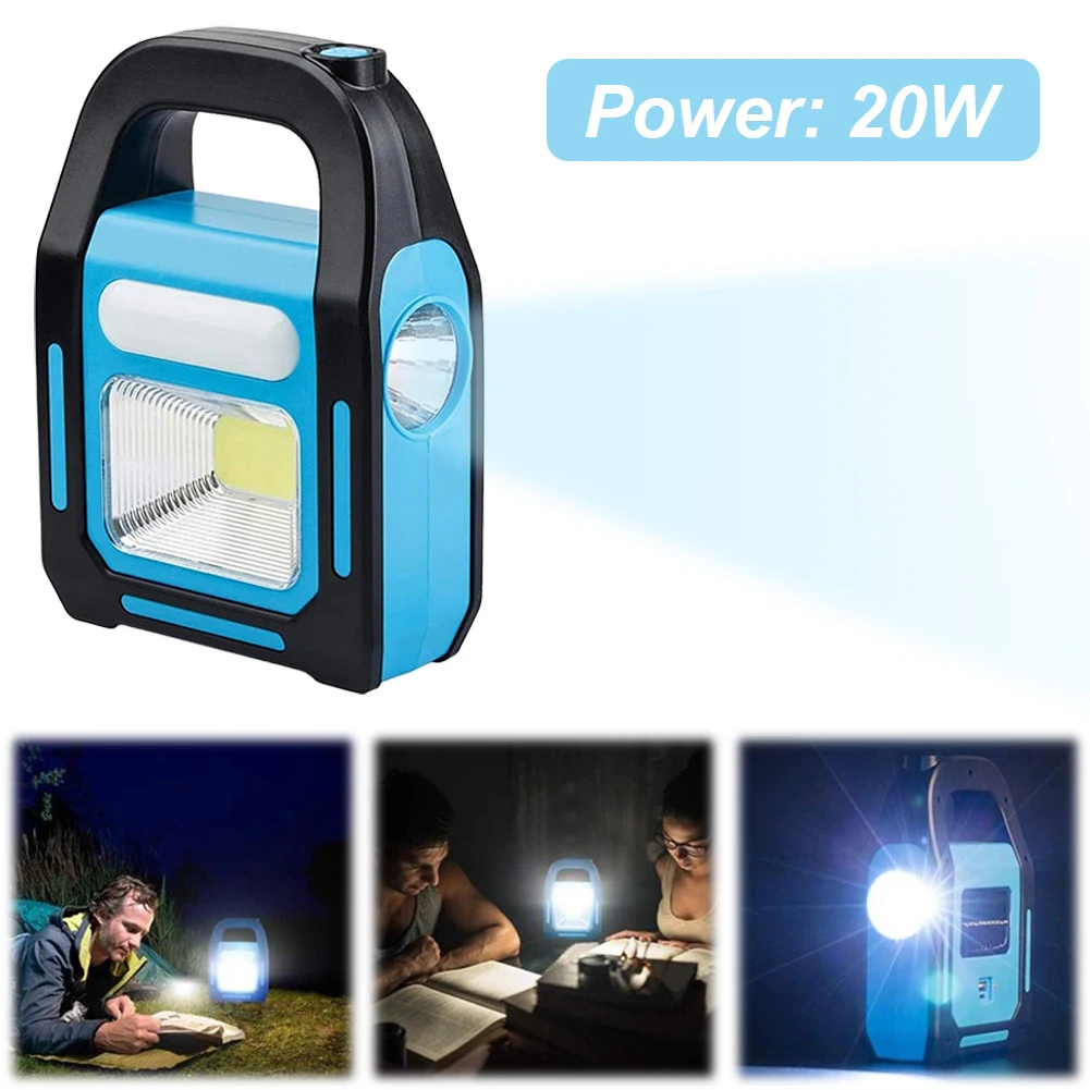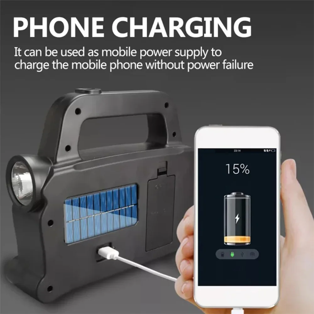 مصباح يدوي للطوارئ يعمل بالطاقة الشمسية وقابل لإعادة الشحن عبر USB ومقاوم للماء IPX4 ومصباح عمل COB LED بثلاثة أوضاع إضاءة لحالات الطوارئ وانقطاع الطاقة والسفر