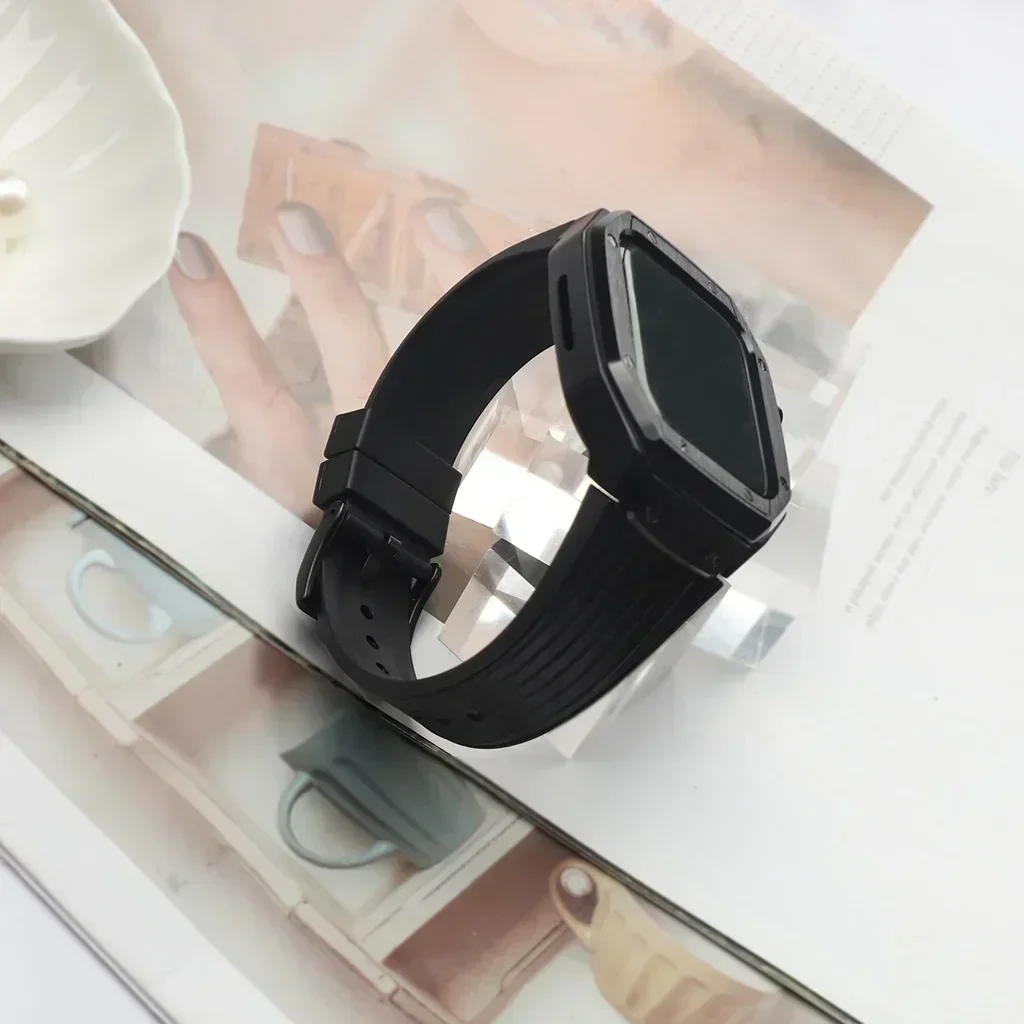 حسّن ساعة Apple Watch الخاصة بك مع طقم التعديل الفاخر، الذي يتميز بهيكل معدني متين وحزام TPU أنيق. صُمم هذا الطقم للإصدارات 9 و8 و7 (45 مم)، ومتوافق مع الإصدارات 6 و5 و4 وSE (44 مم)، ليعزز أناقتك وحمايتك. حوّل ساعتك إلى قطعة مميزة بمواد فاخرة وملاءمة مثالية.