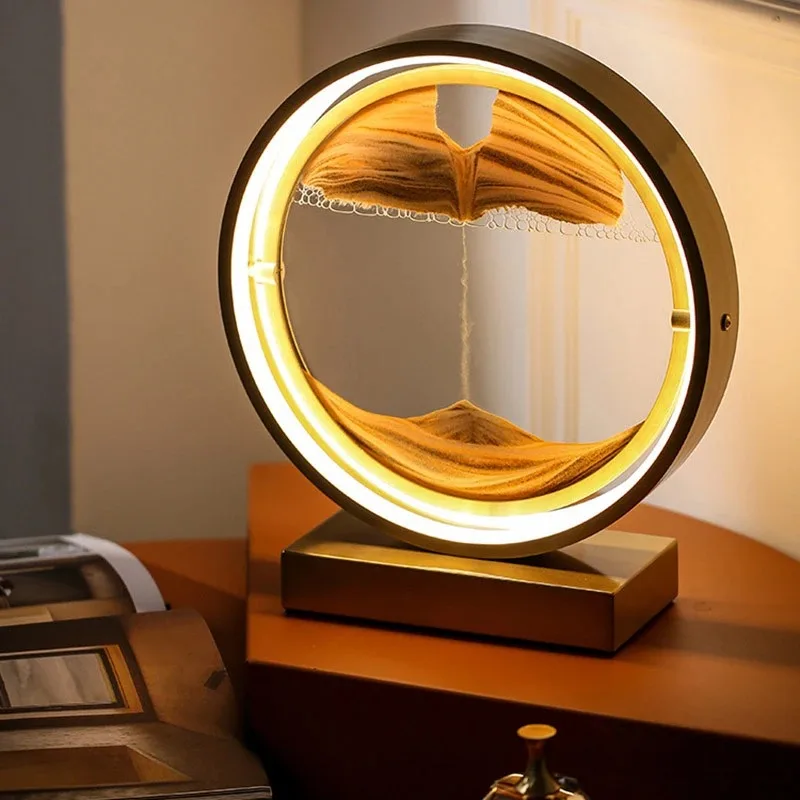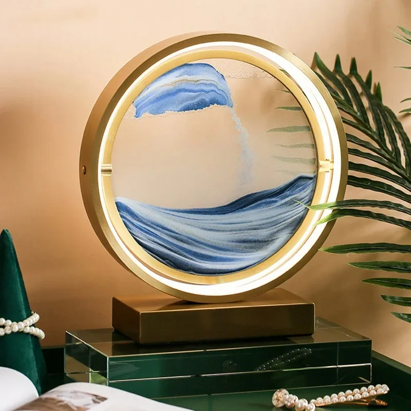 مصنوعة بـ إطار دائري أنيق ويتم تركيبها على قاعدة قوية، هذه الزينة الرملية المتحركة مثالية لتعزيز مكتب أو غرفة معيشة أو غرفة نوم. كما أنه يجعل التفكير هدية عيد ميلاد أو عطلة أو احتفال بالمنزل الجديد لمحبي الفن والتصميم.