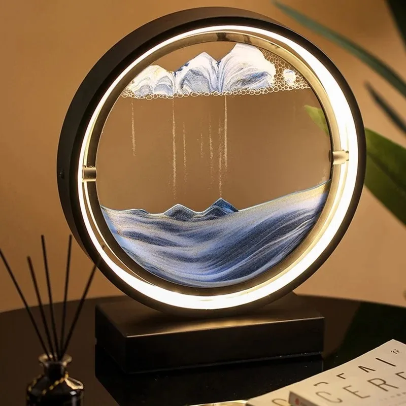 ال لوحة الساعة الرملية الفاخرة قطعة ديكورية خلابة تجمع بين الفن والاسترخاء والأناقة. مع كل حركة أو دوران لطيف، يتدفق الرمل الملون ببطء ليخلق مناظر طبيعية متغيرة باستمرار. الجبال والأنهار والأمواج, ، مما يوفر تجربة بصرية مهدئة.