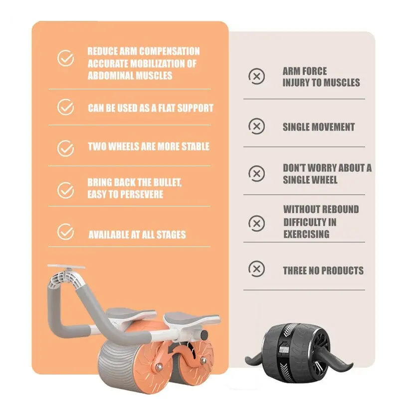 سمات:عجلة الارتداد التلقائي للبطن: حركة عجلة البطن سلسة وقابلة للتحكم، مع توفير الارتداد التلقائي، تساعد على العودة بعد الحركة الكاملة.