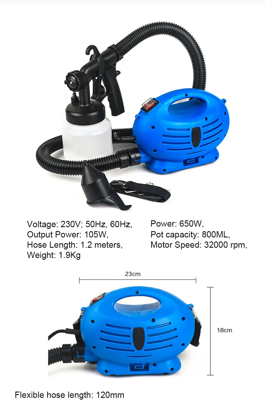 • تتضمن العبوة: بخاخ طلاء زووم، مسدس رش، حزمة طاقة، خرطوم، دليل المستخدم