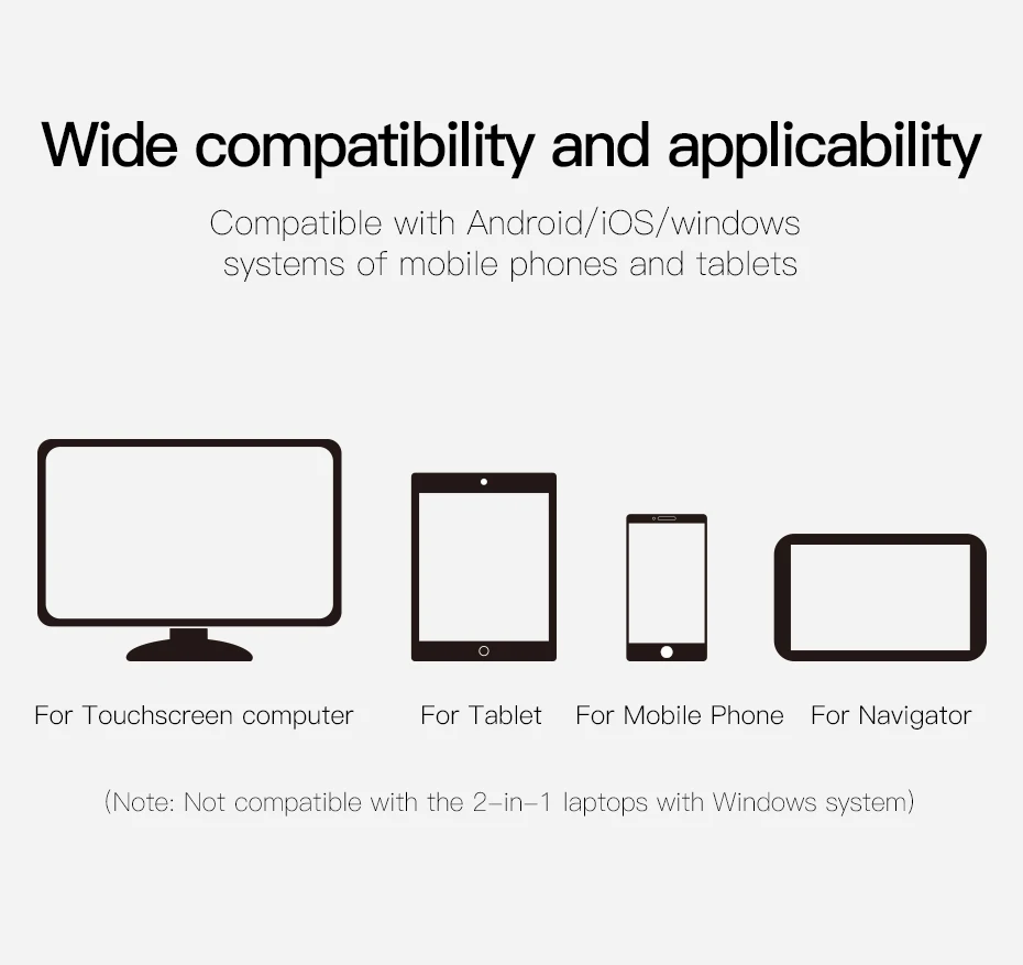 التوافق: الهواتف الذكية، والأجهزة اللوحية، والملاحة، وأجهزة الكمبيوتر ذات الشاشة التي تعمل باللمس (بدون أجهزة الكمبيوتر المحمولة 2 في 1 بنظام Windows)