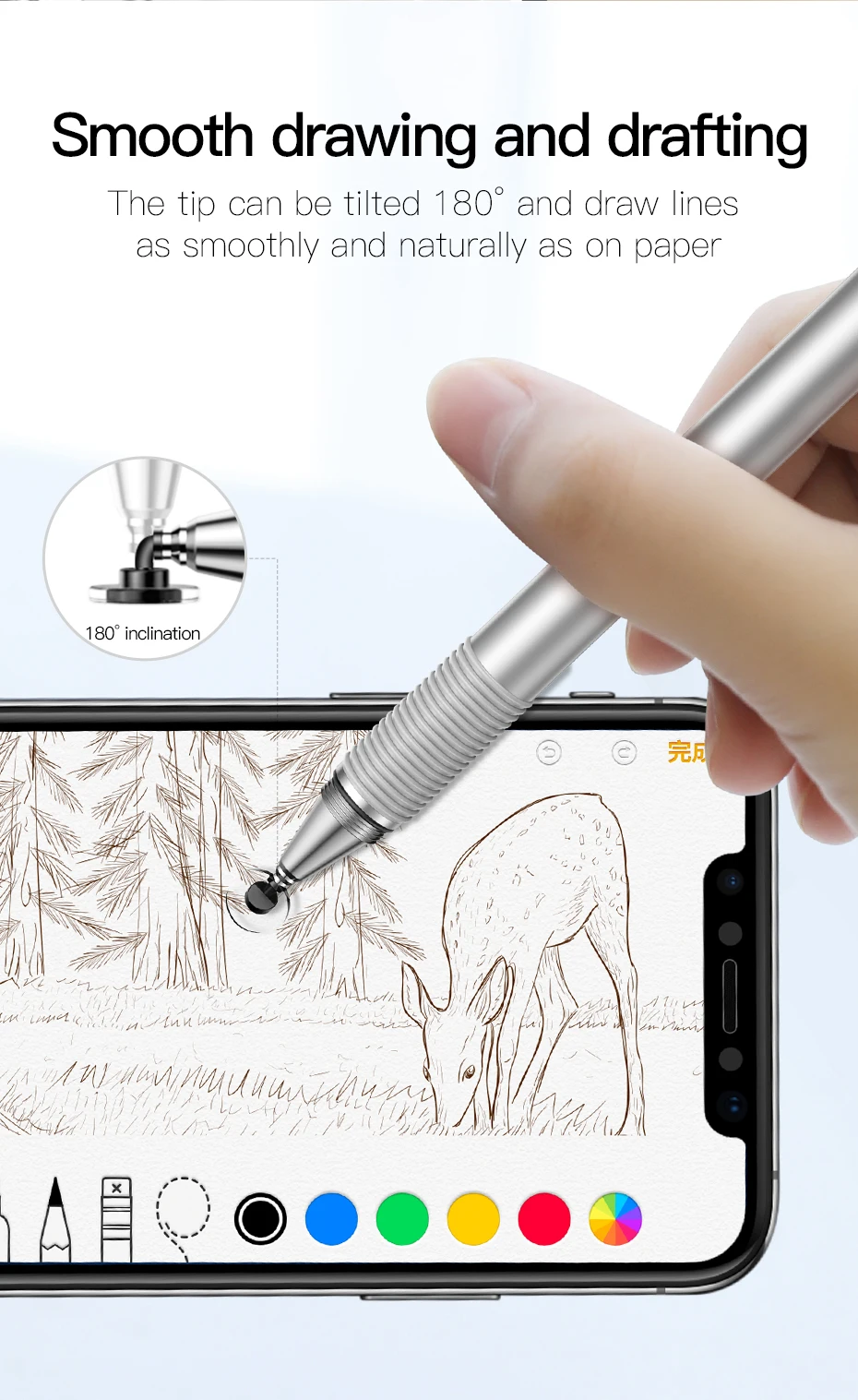 للمبدعين؟ يتميز بحساسية عالية، يلامس طرف القرص الشفاف الشاشة بلطف ومرونة. يمكن إمالة الطرف بزاوية 180 درجة لرسم خطوط بسلاسة كما هو الحال على الورق. مثالي للرسم والتصميم.