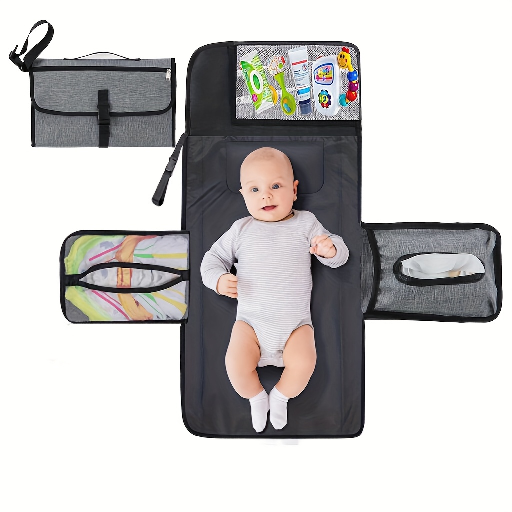 سجادة تغيير الحفاضات هذه خفيفة الوزن وسهلة الحمل، مثالية للآباء كثيري التنقل. تتميز بفوطة سفر قابلة للفصل، وجيب للمناديل، وألياف بوليستر مقاومة للماء لسهولة التنظيف. مثالية لحفلات استقبال المولود الجديد وهدايا المواليد الجدد، تجمع بين العملية والأناقة بتصميم أنيق باللونين الأسود والرمادي.