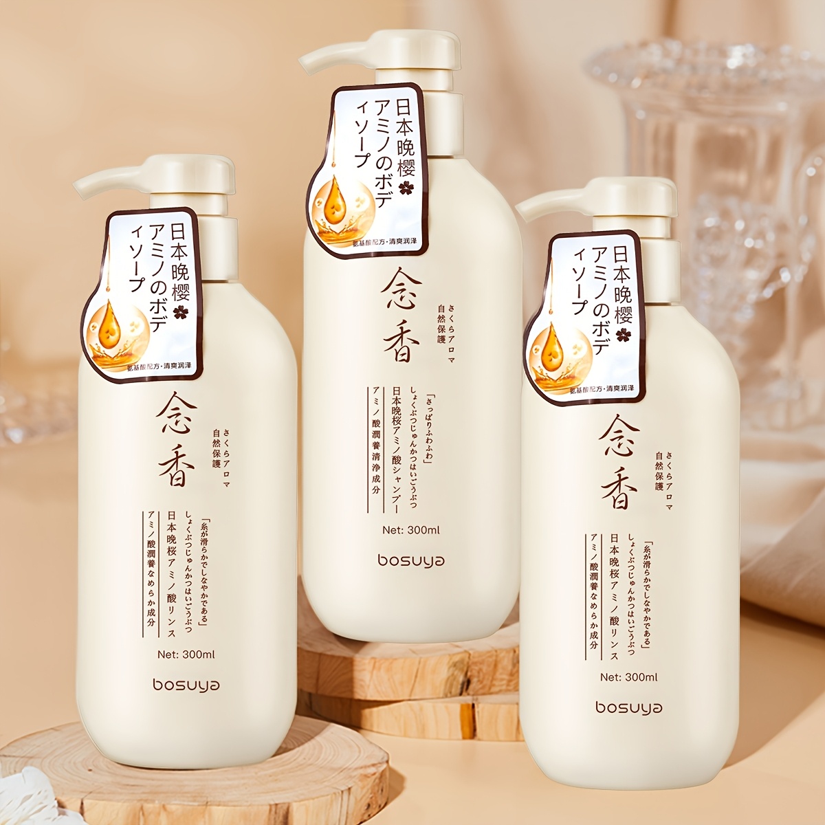 نقدم لكم مجموعة بوسويا للغسيل والعناية، وهي مجموعة ثلاثية فاخرة مصممة لتعزيز روتين العناية بالشعر والجسم. غنية برائحة أزهار الكرز اليابانية الرقيقة، تجمع هذه المجموعة بين قوة التنظيف اللطيفة لجل الاستحمام والخصائص المغذية لبلسم وشامبو نباتيين غنيين بالأحماض الأمينية.