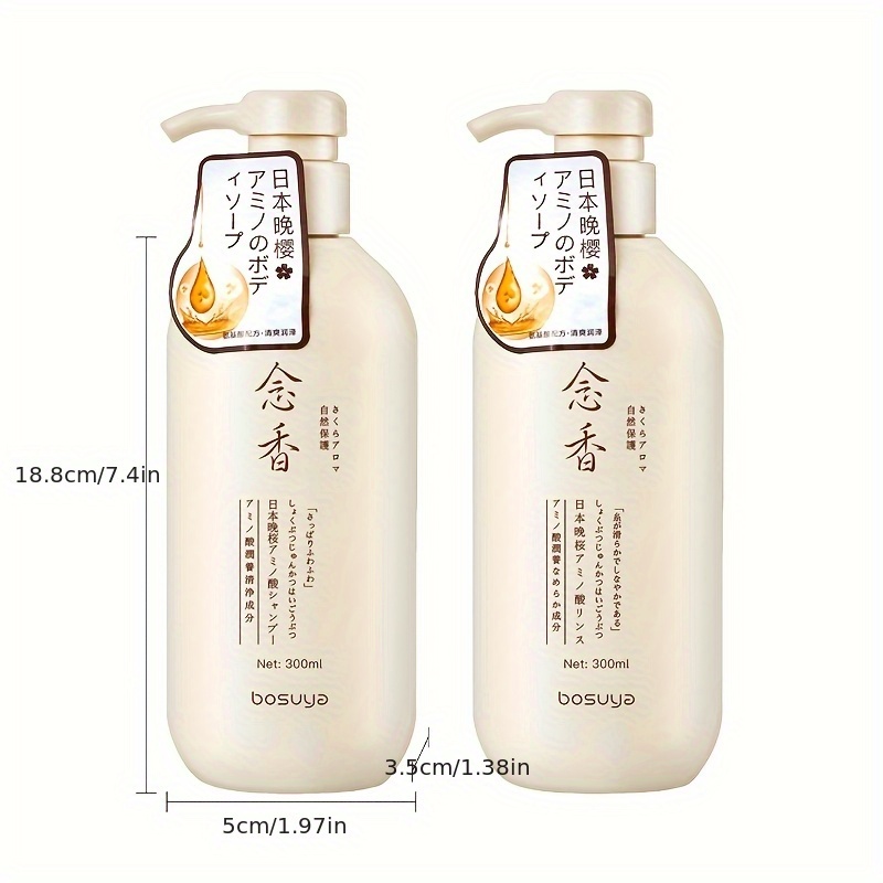استمتعي برفاهية العناية مع مجموعة بوسويا للغسيل والعناية. غنية برائحة أزهار الكرز الآسرة، وتحتوي على شامبو وبلسم نباتي مغذي بأحماض أمينية، يوفران تنظيفًا لطيفًا وترطيبًا عميقًا. مثالية لجميع أنواع الشعر، حيث تُنعش شعرك وتتركه ناعمًا وعطريًا.