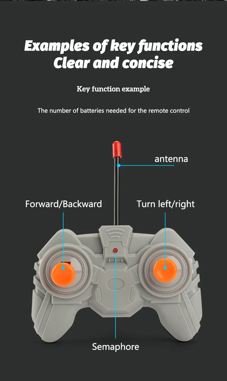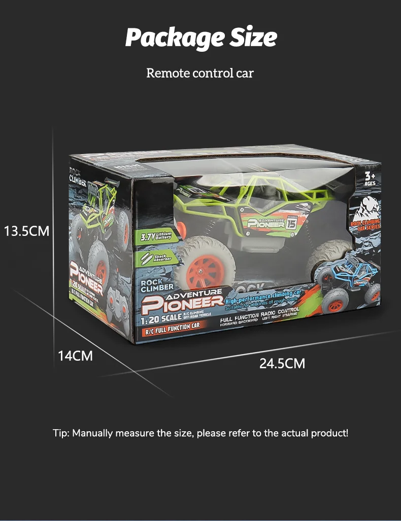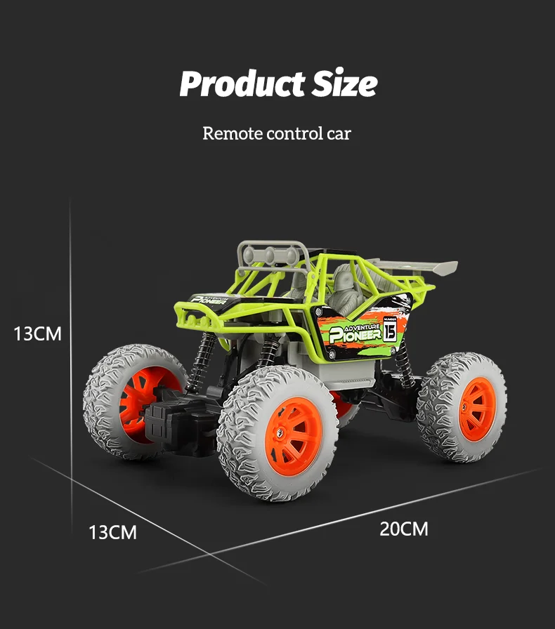 أطلق العنان لإثارة السرعة والمغامرة مع سيارة سباق عالية السرعة للتحكم عن بعد على الطرق الوعرة. تم بناؤه مع تصميم الدفع الرباعي بمقياس 1:20, تعتبر شاحنة RC هذه مثالية للأطفال والهواة الذين يحبون التسلق والانجراف والتضاريس الوعرة.