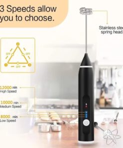 The Rechargeable Foam Maker is a USB electric milk frother and mixer designed for coffee, lattes, cappuccinos, and more. With 3 adjustable speed settings و two interchangeable whisk heads, it quickly turns milk or cream into rich, velvety foam for café-style drinks at home. Its powerful motor also makes it suitable for whisking eggs, sauces, butter, and soups. Featuring a بطارية قابلة لإعادة الشحن بسعة 1200 مللي أمبير with convenient USB charging, it eliminates the need for frequent battery replacement. Compact, lightweight, and easy to clean, this foam maker is ideal for home kitchens, cafés, or restaurants.