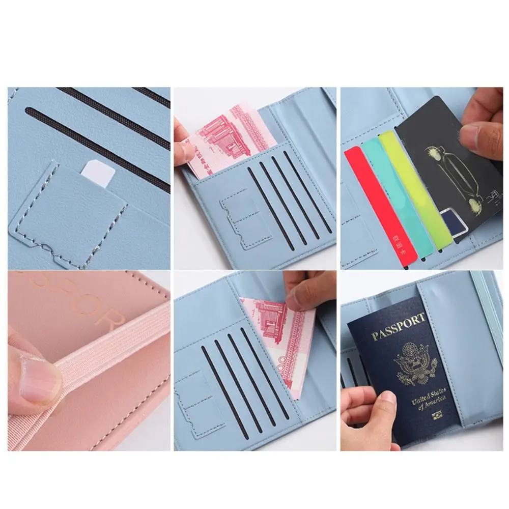 غطاء جواز سفر RFID مصنوع من جلد البولي يوريثان متعدد الوظائف، رفيع للغاية ومقاوم للماء، وواقي جواز سفر، ومحفظة لبطاقات الهوية الائتمانية وحامل جواز السفر