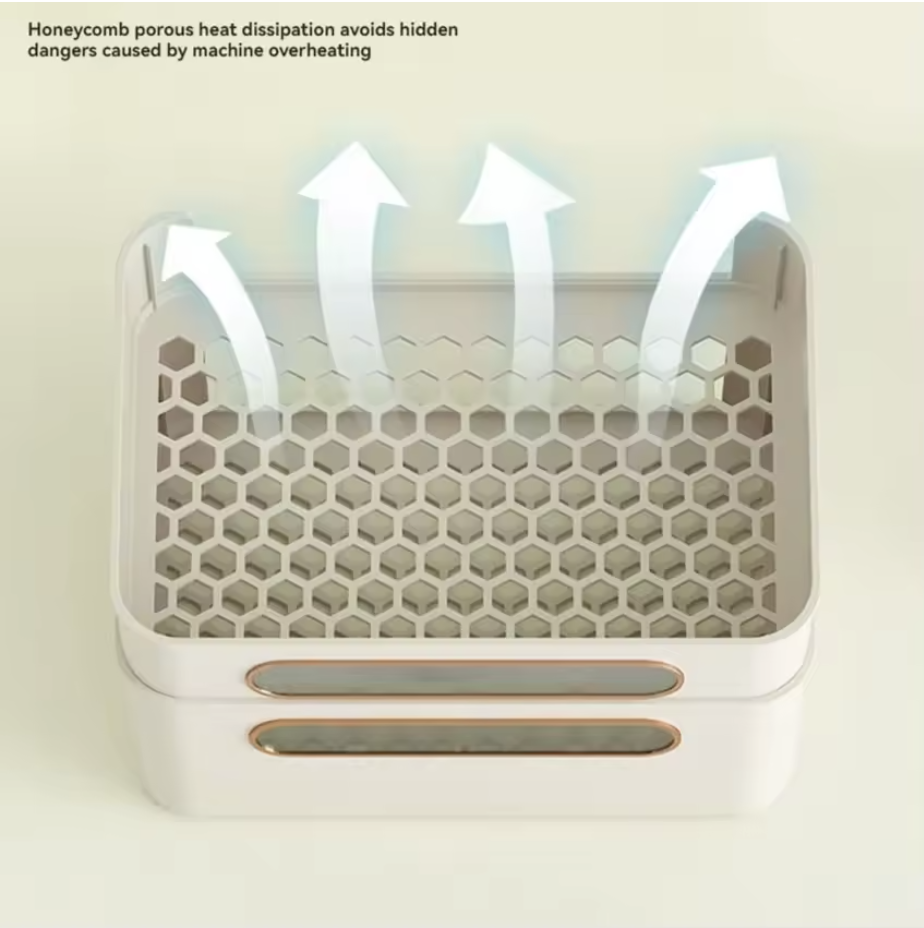 لتجنب ارتفاع درجة حرارة الأجهزة مما قد يسبب مشاكل محتملة، تم تصميم صندوق التخزين هذا مع تبديد الحرارة والتهوية، والذي يحتوي على فتحات متعددة لتصريف الحرارة في جسم الصندوق.