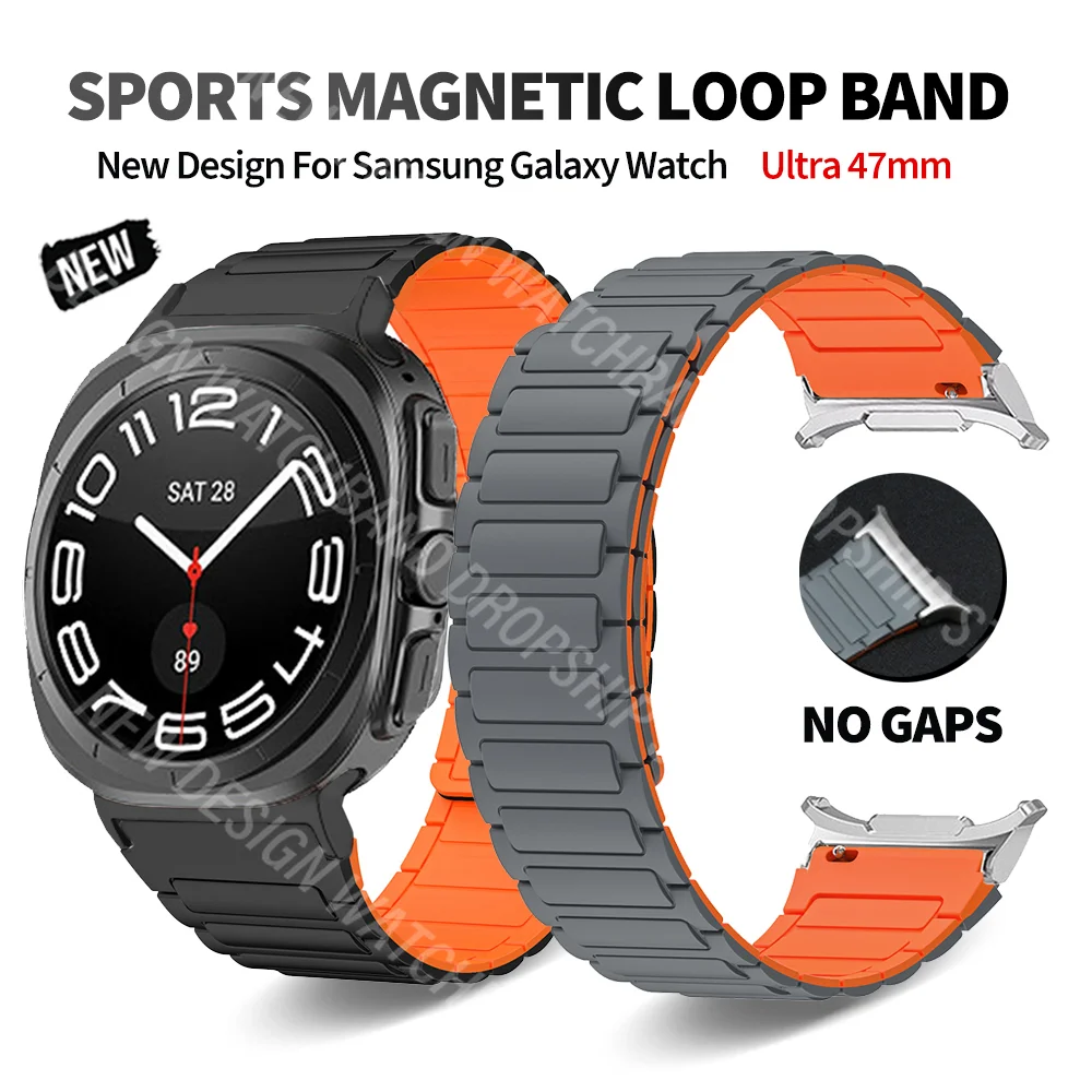 حزام حلقي مغناطيسي بدون فجوات لساعة سامسونج جالاكسي الترا 47 مم، سوار رياضي من السيليكون لساعة سامسونج الترا 47 مم، سوار ناعم