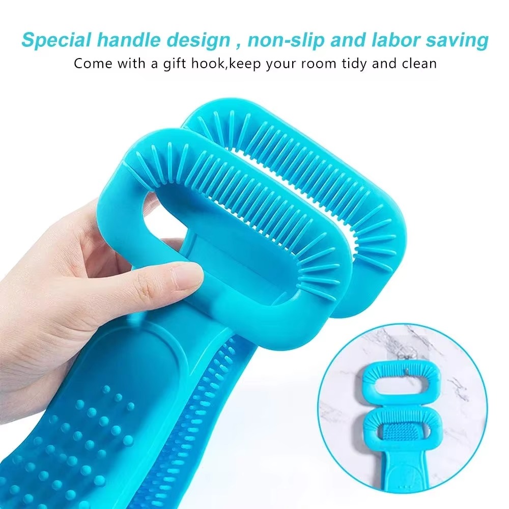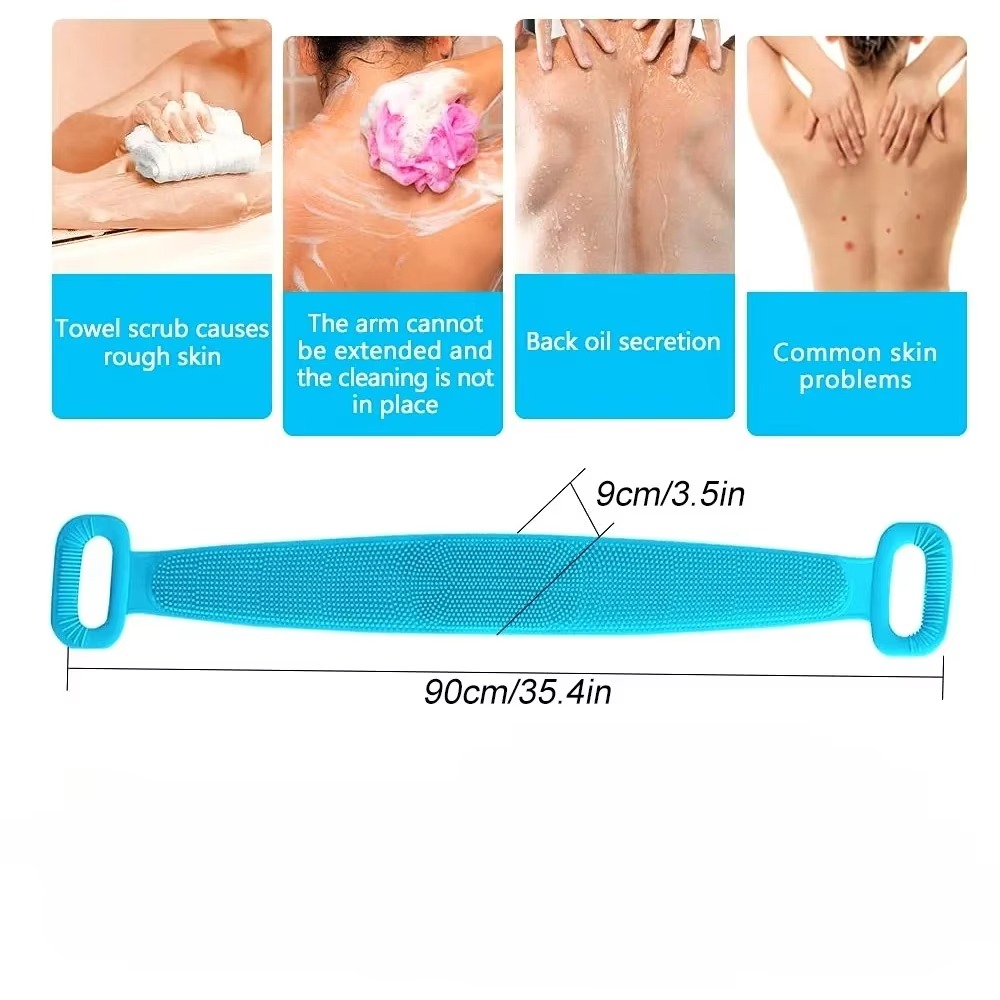 فرشاة الجسم المصنوعة من السيليكون للاستحمام، حزام الاستحمام، فرشاة تقشير الظهر، حزام الغسيل النظيف