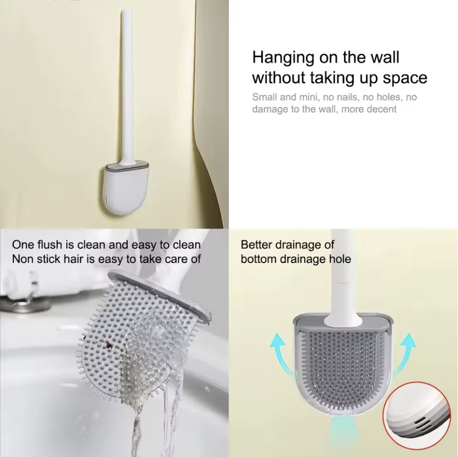 فرشاة المرحاض المصنوعة من السيليكون برأس مرن 360 درجة وقاعدة سريعة الجفاف ومقبض مريح - صحية ومتينة وتوفر المساحة للحمامات الحديثة.