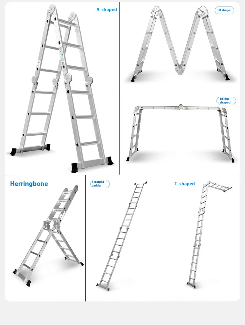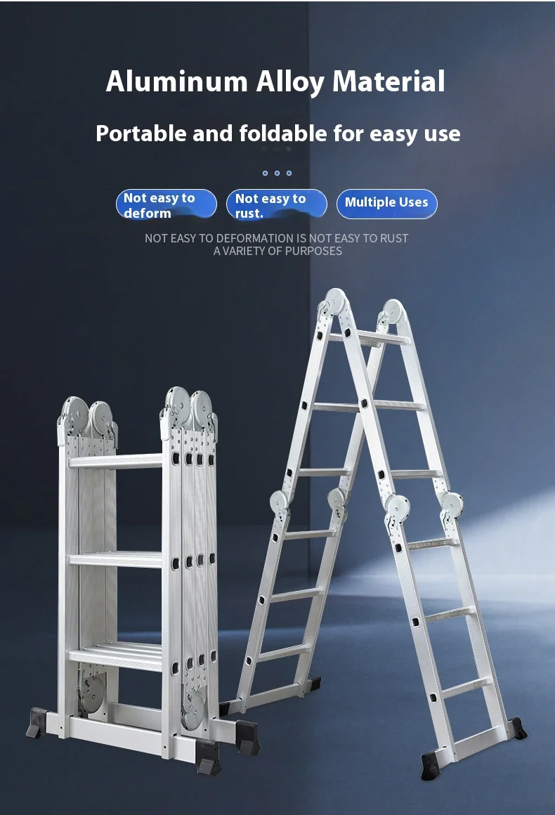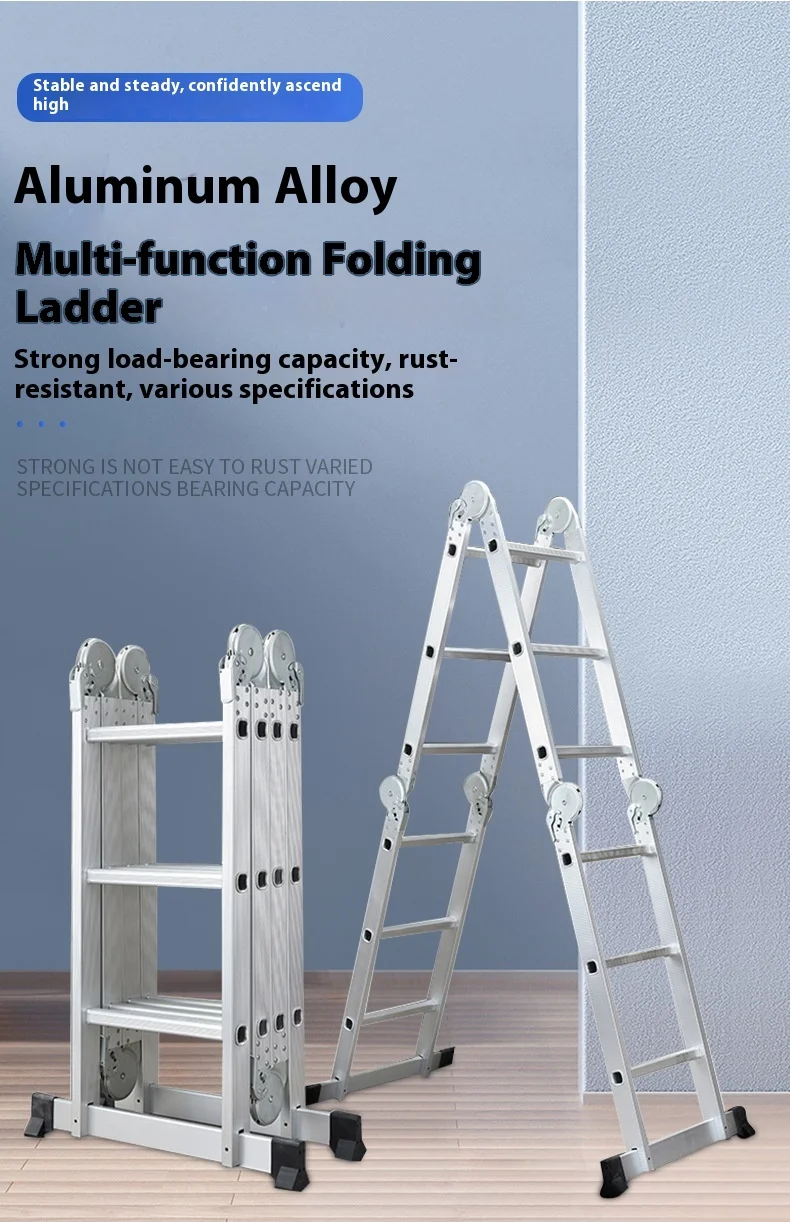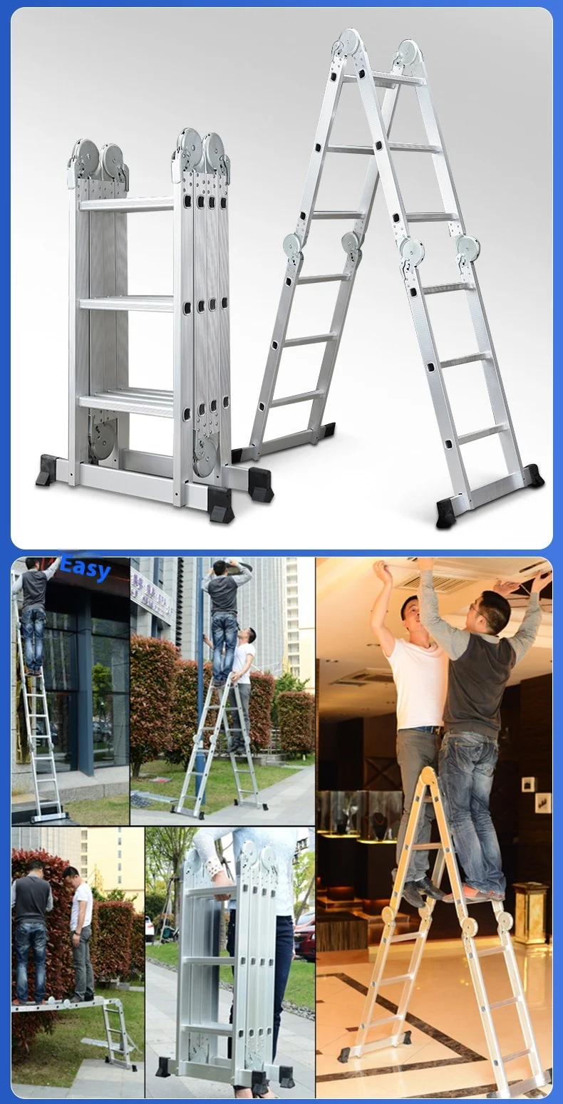 السلم القابل للطي عالي التحمل هو سلم من سبائك الألومنيوم متعدد الأغراض مُصمم للاستخدام المنزلي والمهني. مصنوع من ألومنيوم متين عالي الجودة، و نظام قفل المفصلة الآمن, يمكن تحويله إلى تكوينات متعددة، بما في ذلك هيكل على شكل حرف A، وسلم ممتد، وسلم جداري، وسلم درج، وإطار سقالة. مع 12 خطوة مع امتداد أقصى يبلغ 3.7 متر، فهو مثالي للمهام الداخلية مثل الطلاء والتنظيف وتغيير المصابيح، بالإضافة إلى المشاريع الخارجية مثل إصلاح الأسقف وتنظيف المزاريب وتقليم الأشجار. أقدام مطاطية مضادة للانزلاق و سمك البناء 1.6 مم توفر الاستقرار والأمان، في حين يضمن التصميم القابل للطي سهولة التخزين والحمل.