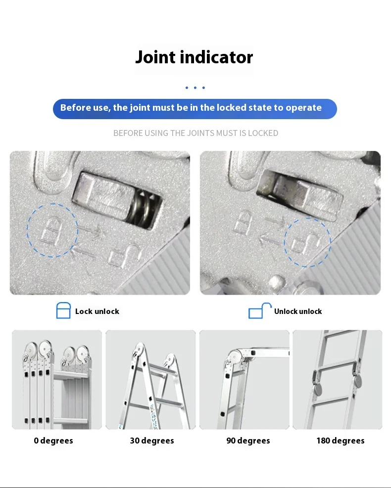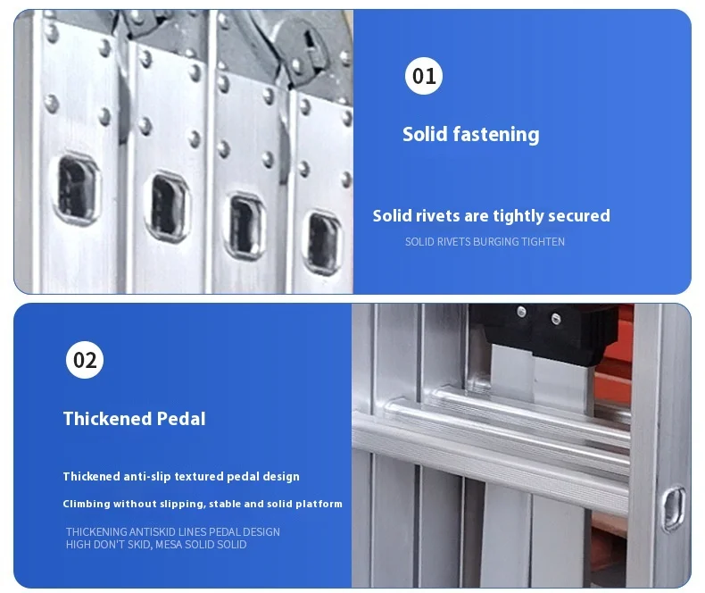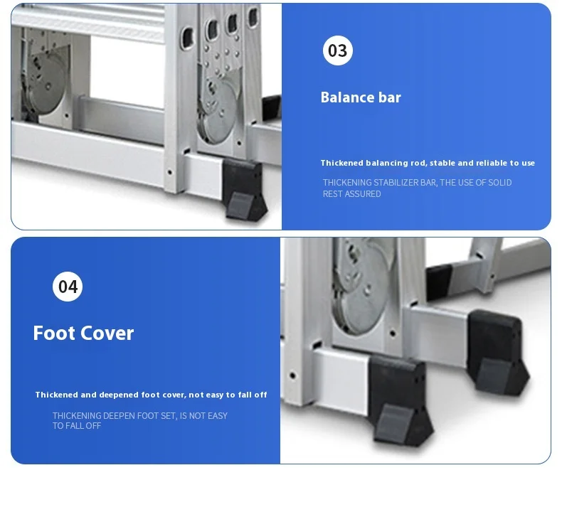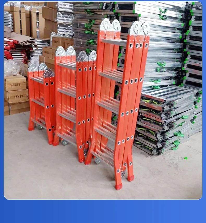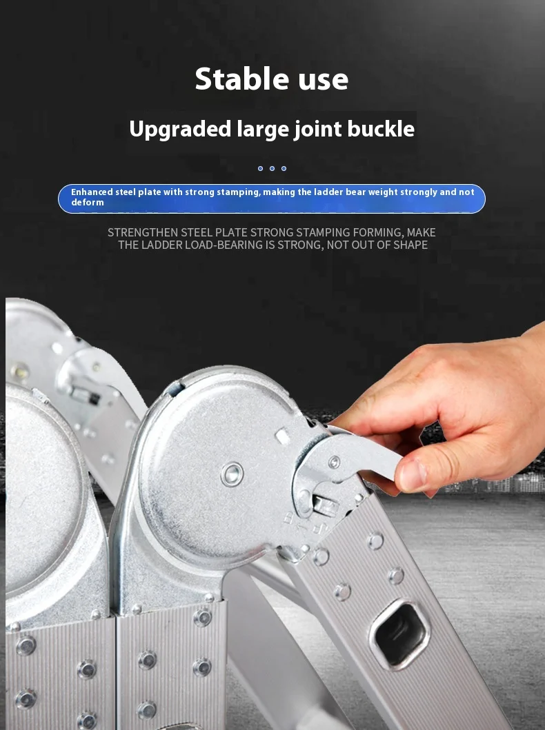 السلم القابل للطي عالي التحمل هو سلم من سبائك الألومنيوم متعدد الأغراض مُصمم للاستخدام المنزلي والمهني. مصنوع من ألومنيوم متين عالي الجودة، و نظام قفل المفصلة الآمن, يمكن تحويله إلى تكوينات متعددة، بما في ذلك هيكل على شكل حرف A، وسلم ممتد، وسلم جداري، وسلم درج، وإطار سقالة. مع 12 خطوة مع امتداد أقصى يبلغ 3.7 متر، فهو مثالي للمهام الداخلية مثل الطلاء والتنظيف وتغيير المصابيح، بالإضافة إلى المشاريع الخارجية مثل إصلاح الأسقف وتنظيف المزاريب وتقليم الأشجار. أقدام مطاطية مضادة للانزلاق و سمك البناء 1.6 مم توفر الاستقرار والأمان، في حين يضمن التصميم القابل للطي سهولة التخزين والحمل.