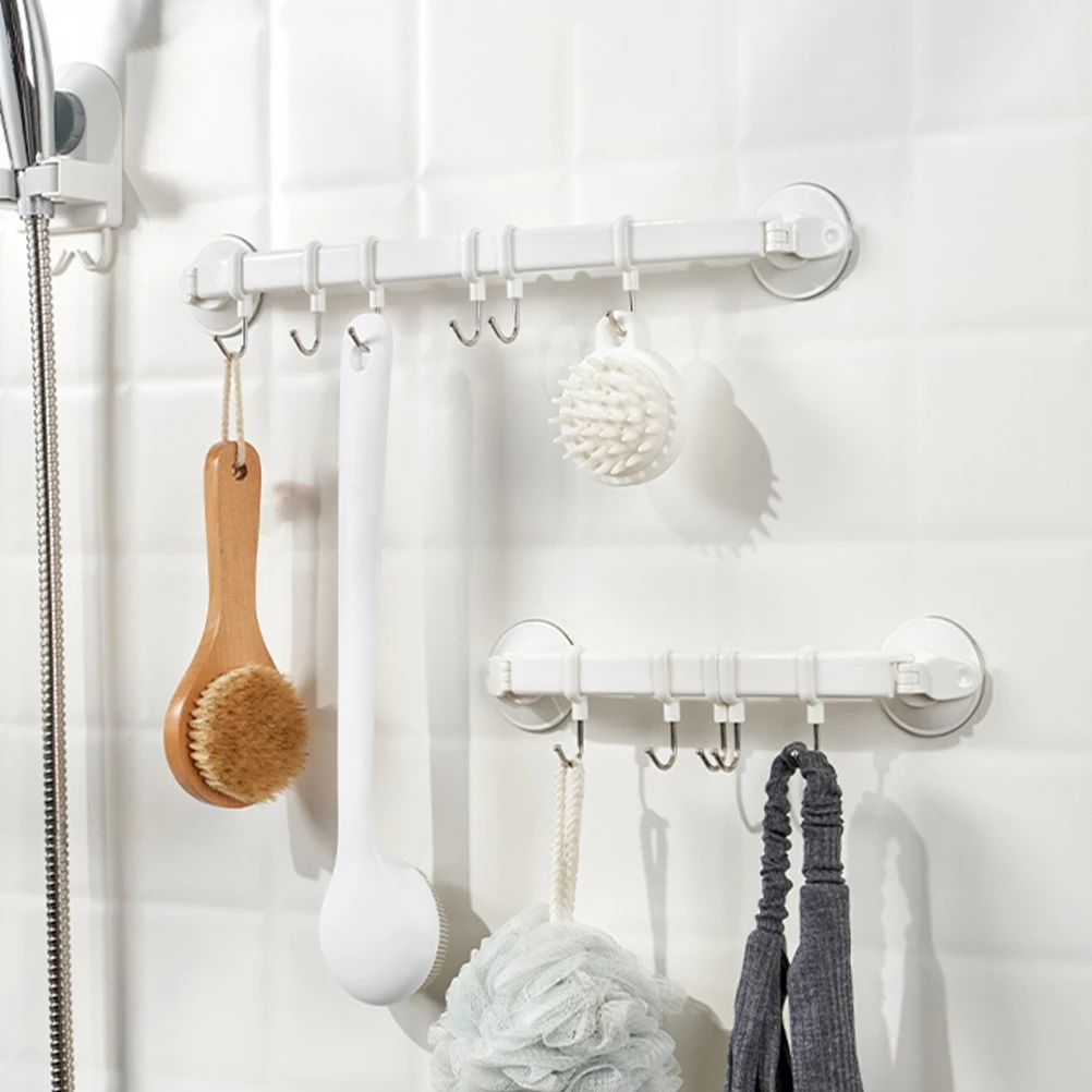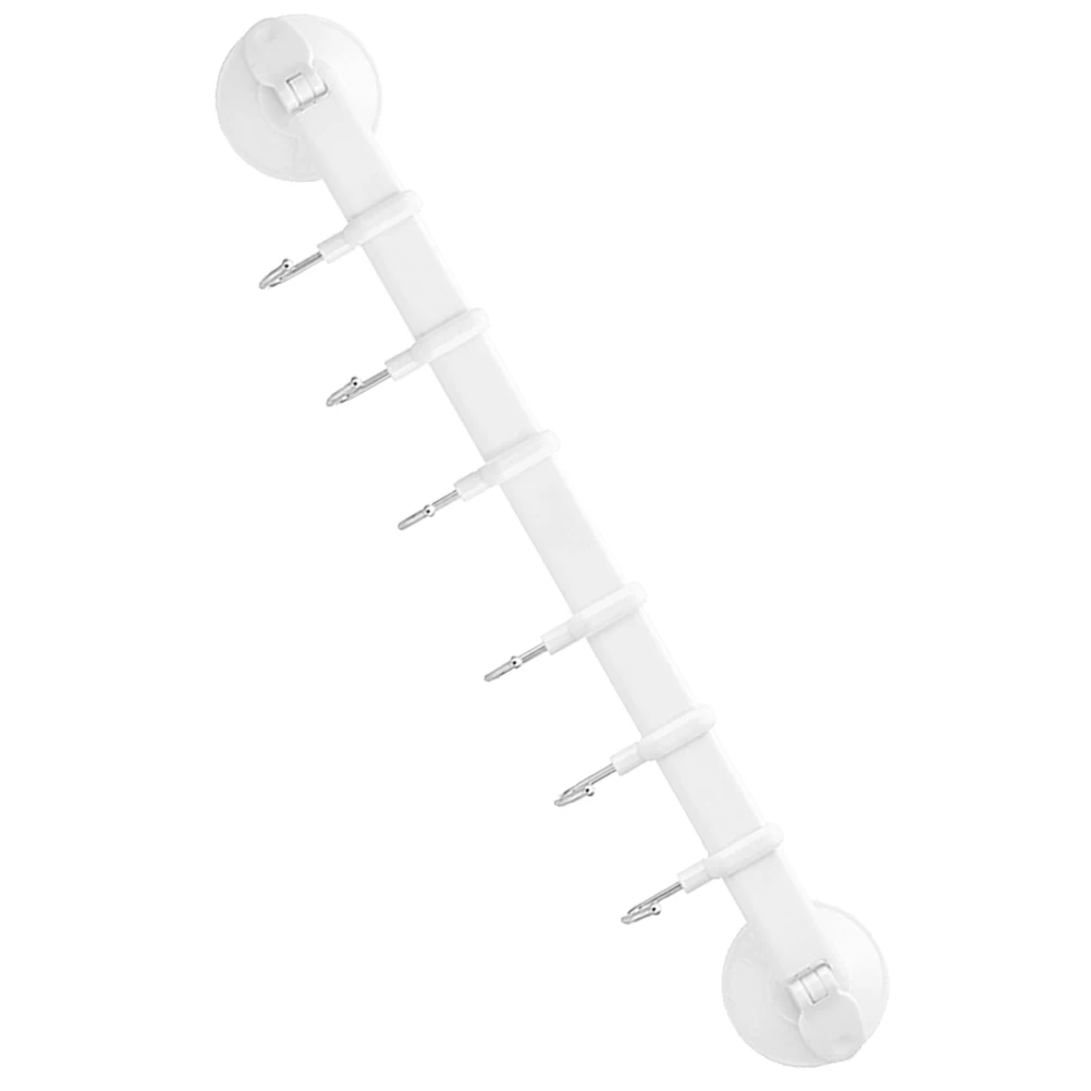 مجهزة بـ 6 خطافات قابلة للإزالة, يتيح لك هذا الرف تعليق المناشف وأدوات المطبخ والأواني والأكواب أو الملابس الصغيرة بشكل منظم، مما يحافظ على مساحتك منظمة وخالية من الفوضى. مصنوع من مواد متينة من الفولاذ المقاوم للصدأ، وPOM، وABS, ، فهو يضمن قوة طويلة الأمد ومقاومة للتآكل.