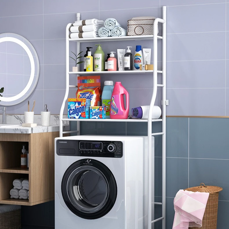 تصميم موفر للمساحة: يستغل المساحة الرأسية فوق الغسالة أو الحوض للتخزين المنظم.