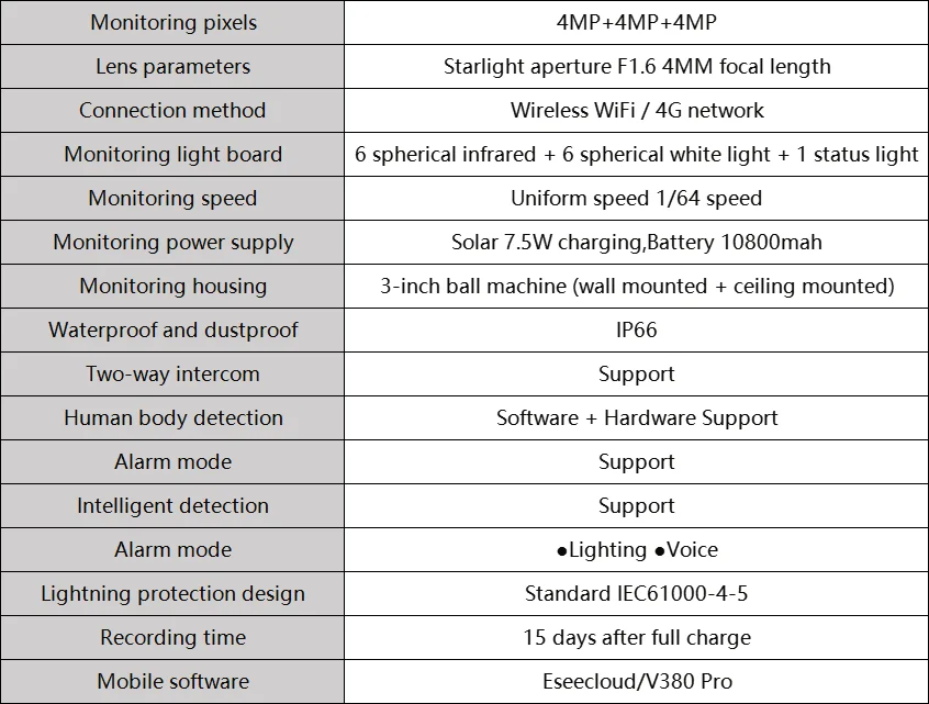اسم المنتج: كاميرا مراقبة تعمل بالطاقة الشمسية تعمل بالواي فاي