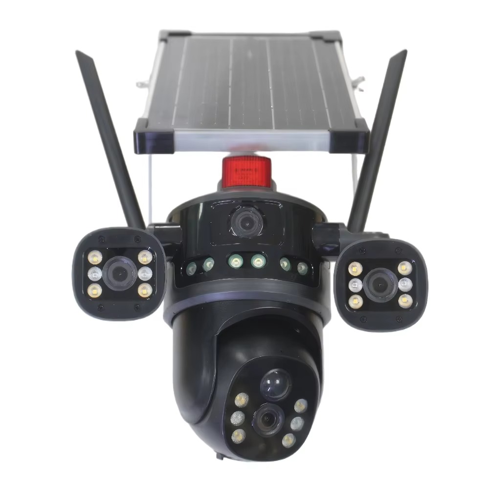 توفر كاميرا الأمان الشمسية WIFI مراقبة كاملة بدقة 12 ميجابكسل عالية الدقة مع فريدة من نوعها نظام العدسات الثلاث للمراقبة البانورامية والتفصيلية. مُجهّز بـ عدستين ثابتتين (بانورامية 180 درجة) و أ عدسة PTZ (تكبير رقمي 10 مرات وتدوير 355 درجة وإمالة 90 درجة), ، فهو يضمن تغطية 360 درجة بدون نقطة عمياء لمنزلك أو عملك. يضم وضعي الرؤية الليلية المزدوجة (الأشعة تحت الحمراء والألوان الكاملة مع LED)، توفر لقطات واضحة ليلاً أو نهارًا. كشف الحركة AI PIR مع التتبع التلقائي ينبه هاتفك الذكي على الفور عبر تطبيق V380 Pro. مع صوت ثنائي الاتجاه، وتنبيهات قابلة للتخصيص، وتخزين سحابي وبطاقة SD (حتى 128 جيجابايت), ، و مشاركة متعددة المستخدمين, صُمم لتوفير حماية ذكية موثوقة. يعمل بنظام بطارية قابلة لإعادة الشحن بسعة 8000 مللي أمبير في الساعة و لوحة شمسية بقدرة 8 وات, تضمن هذه الكاميرا اللاسلكية 100% تشغيلًا مستمرًا دون أي تعقيدات في التوصيلات الكهربائية. IP66 مقاوم للماء, ، فهو متين في جميع الأحوال الجوية، مما يجعله مثاليًا للاستخدام الخارجي في ظروف الكويت.