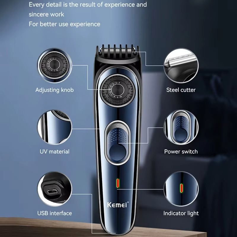 استمتع بقص شعر دقيق وناعم ومريح في المنزل أو أثناء التنقل مع ماكينة قص الشعر اللاسلكية Kemei KM-1256. تم تصميم هذه الماكينة خصيصًا للمحترفين والمستخدمين اليوميين على حد سواء، وتتميز بـ شفرات حادة من الفولاذ المقاوم للصدأ التي تقطع بسهولة جميع أنواع الشعر دون شد أو تهيج. مع 10 مستويات قطع قابلة للتعديل (1-10 مم), يمكنك تحقيق تلاشي واضح وخطوط حادة وتصميمات مفصلة بكل سهولة. محرك عالي الأداء يضمن قوة عالية مع ضوضاء منخفضة (أقل من 65 ديسيبل)، مما يجعله مناسبًا حتى للأطفال والحيوانات الأليفة. يعمل بـ بطارية ليثيوم أيون بسعة 600 مللي أمبير في الساعة, ، فإنه يوفر ما يصل إلى 45 دقيقة من الاستخدام اللاسلكي بعد شحن كامل لمدة 8 ساعات ويمكن أيضًا استخدامها أثناء توصيلها بالكهرباء. سواء للعناية المنزلية أو الحلاقة الاحترافية، توفر ماكينة الحلاقة خفيفة الوزن هذه أداءً موثوقًا به ونهاية نظيفة في كل مرة.