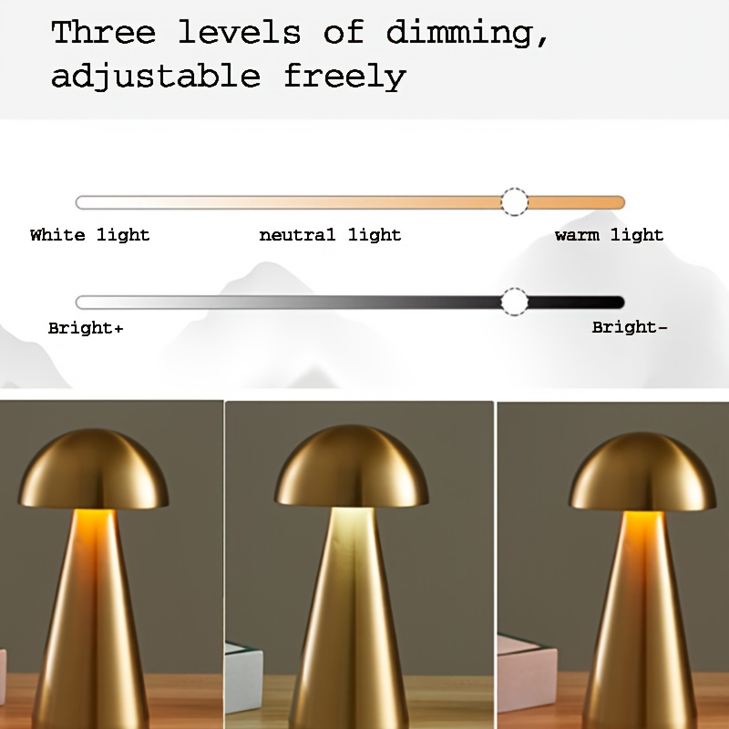 نقدم لكم مصباح الطاولة اللاسلكي بتصميم معدني إبداعي بدون حفر، وهو إضافة أنيقة لأي غرفة تجمع بين العملية والجماليات العصرية. هذا المصباح الصغير على شكل فطر مثالي لخلق أجواء دافئة في غرف النوم، وغرف المعيشة، وغرف الطعام، أو الحانات، دون عناء الحفر أو التركيبات المعقدة.